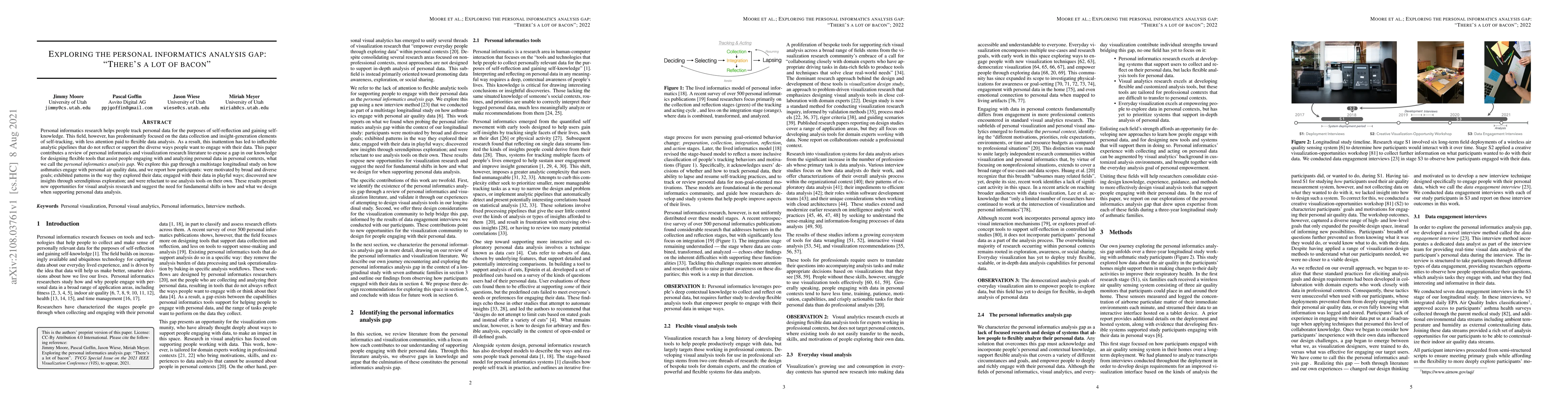 This paper identifies a gap in personal informatics research regarding flexible data analysis tools for self-reflection, revealing that current analytic pipelines are inflexible and do not support diverse user engagement. Through a longitudinal study on asthmatics, the authors highlight the need for new visual analysis methods to better support varied data exploration and insight generation.