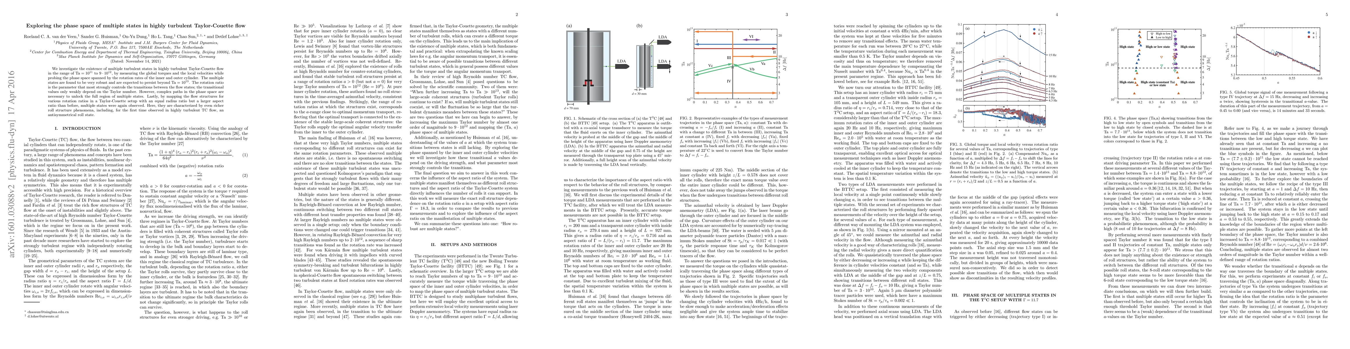 This study explores the existence of multiple turbulent states in highly turbulent Taylor-Couette flow, finding robust states controlled by rotation ratios, with complex paths in phase space necessary for full state exploration. An antisymmetrical roll state was observed for the first time in this setup.