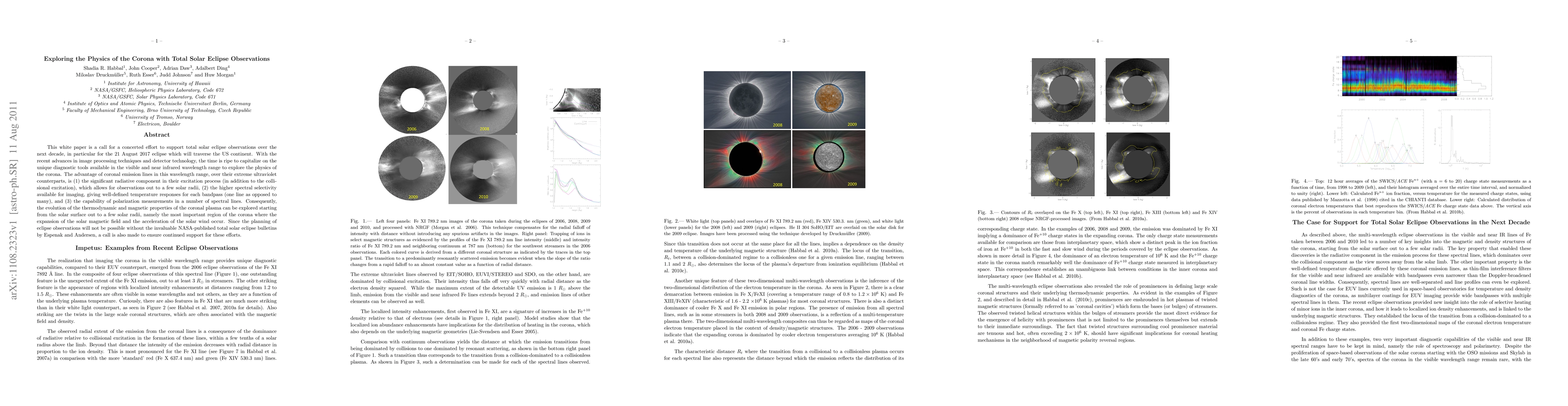 This white paper is a call for a concerted effort to support total solar eclipse observations over the next decade, in particular for the 21 August 2017 eclipse which will traverse the US continent. With the recent advances in image processing techniques and detector technology, the time is ripe to capitalize on the unique diagnostic tools available in the visible and near infrared wavelength range to explore the physics of the corona. The advantage of coronal emission lines in this wavelength range, over their extreme ultraviolet counterparts, is (1) the significant radiative component in their excitation process (in addition to the collisional excitation), which allows for observations out to a few solar radii, (2) the higher spectral selectivity available for imaging, giving well-defined temperature responses for each bandpass (one line as opposed to many), and (3) the capability of polarization measurements in a number of spectral lines. Consequently, the evolution of the thermodynamic and magnetic properties of the coronal plasma can be explored starting from the solar surface out to a few solar radii, namely the most important region of the corona where the expansion of the solar magnetic field and the acceleration of the solar wind occur. Since the planning of eclipse observations will not be possible without the invaluable NASA-published total solar eclipse bulletins by Espenak and Andersen, a call is also made to ensure continued support for these efforts.