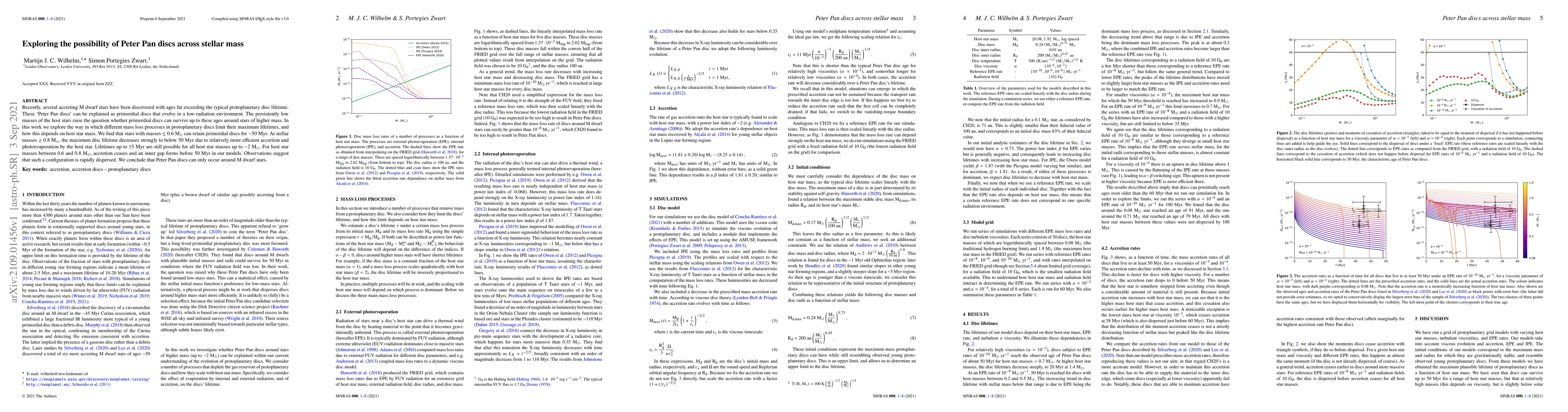 This study investigates the longevity of 'Peter Pan discs' – primordial discs around older stars – finding that only M dwarf stars (<0.6 M☉) can sustain them for ~50 Myr. For higher mass stars (>0.8 M☉), disc lifetimes drop below 50 Myr due to efficient accretion and photoevaporation. Discs around intermediate-mass stars (0.6-0.8 M☉) cease accretion and form gaps, rapidly dispersing.