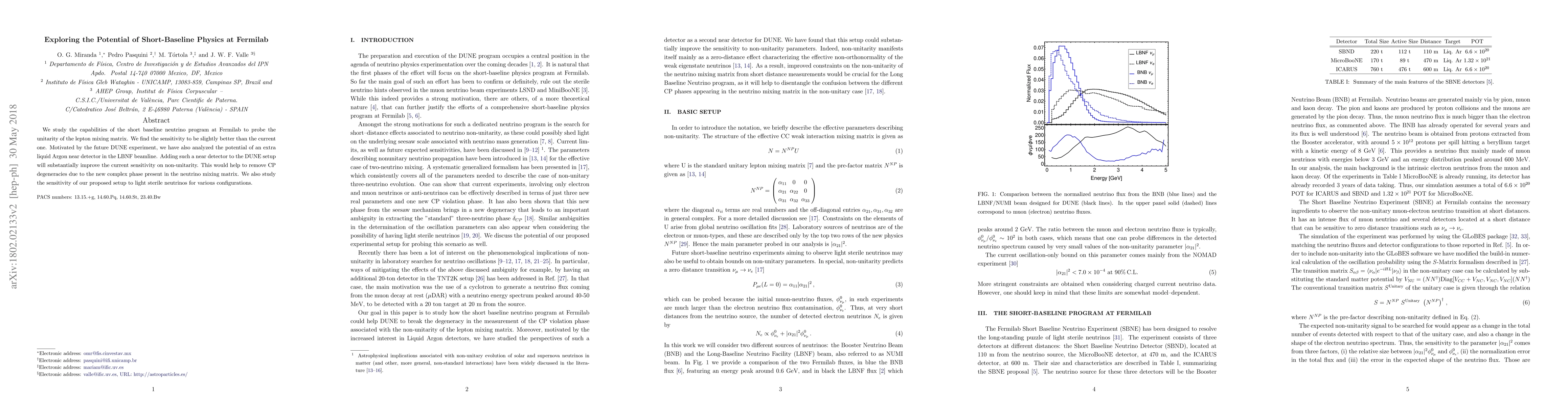 Researchers at Fermilab studied the potential of a short-baseline neutrino program to test lepton mixing matrix unitarity and improved sensitivity compared to current experiments. Adding an extra liquid Argon near detector could enhance sensitivity on non-unitarity and help remove CP degeneracies in neutrino mixing.