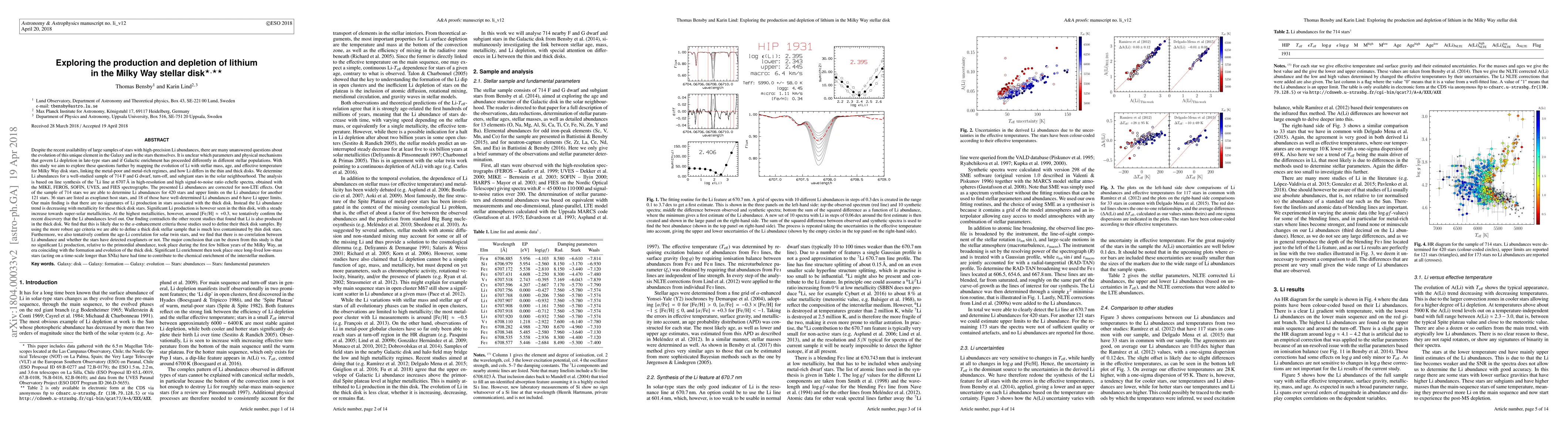 [ABRIDGED] We determine Li abundances for a well-studied sample of 714 F and G dwarf, turn-off, and subgiant stars in the solar neighbourhood. The analysis is based on line synthesis of the Li line at 6707 {\AA} in high-resolution and high signal-to-noise ratio echelle spectra, obtained with the MIKE, FEROS, SOFIN, UVES, and FIES spectrographs. The presented Li abundances are corrected for non-LTE effects. Out of the sample of 714 stars we are able to determine Li abundances for 420 stars and upper limits on the Li abundance for another 121 stars. 18 of the stars with well-determined Li abundances are listed as exoplanet host stars. Our main finding is that there are no signatures of Li production in the thick disk, but the Li abundance for stars of the same effective temperature is independent of metallicity for stars that can be associated with the Galactic thick disk. Significant Li production is however seen in the thin disk, with a steady increase towards super-solar metallicities. At the highest metallicities, however, around [Fe/H]~ +0.3, we tentatively confirm the recent discovery that the Li abundances level out. We hence contradict the recent finding in other studies that found that Li is also produced in the thick disk. This is likely due to the chemically defined selection criteria those studies used to define their thick disk samples. Age criteria that we use here, produce a thick disk stellar sample that is much less contaminated by thin disk stars, and hence more reliable abundance trends. [ABRIDGED] A conclusion that can be drawn is that no significant Li production, relative to the primordial abundance, took place during the first few billion years of the Milky Way, an era coinciding with the formation and evolution of the thick disk. [ABRIDGED]