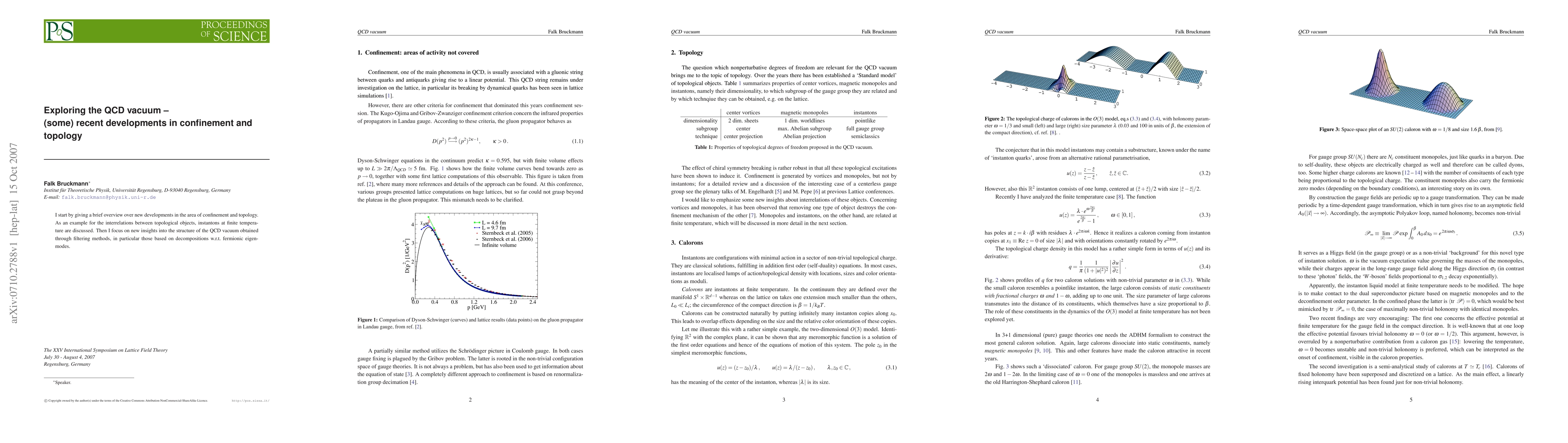 I start by giving a brief overview over new developments in the area of confinement and topology. As an example for the interrelations between topological objects, instantons at finite temperature are discussed. Then I focus on new insights into the structure of the QCD vacuum obtained through filtering methods, in particular those based on decompositions w.r.t. fermionic eigenmodes.