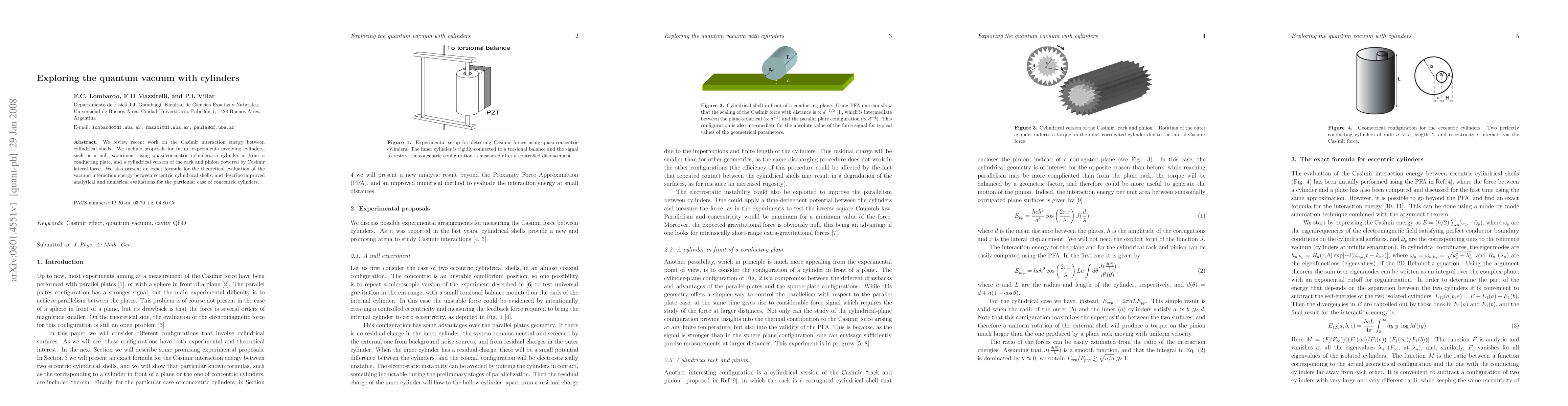 We review recent work on the Casimir interaction energy between cylindrical shells. We include proposals for future experiments involving cylinders, such us a null experiment using quasi-concentric cylinders, a cylinder in front a conducting plate, and a cylindrical version of the rack and pinion powered by Casimir lateral force. We also present an exact formula for the theoretical evaluation of the vacuum interaction energy between eccentric cylindrical shells, and describe improved analytical and numerical evaluations for the particular case of concentric cylinders.