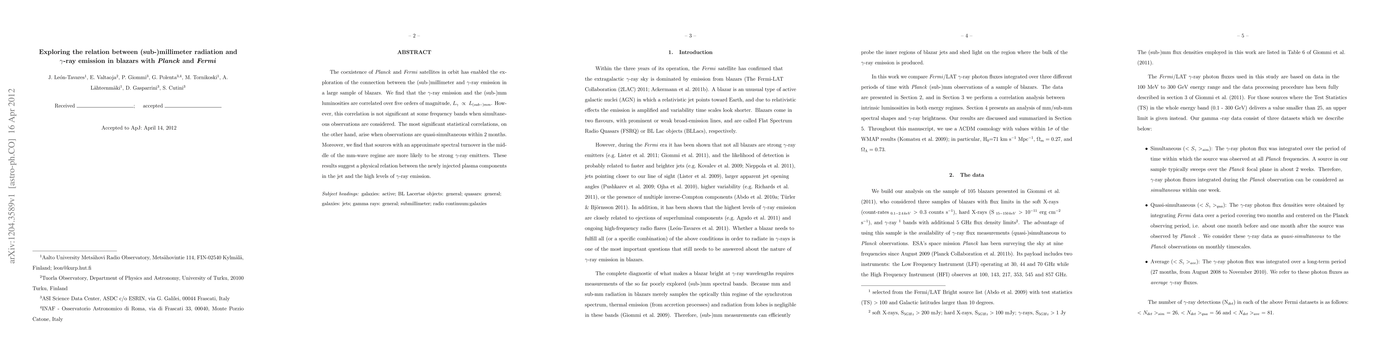 The coexistence of Planck and Fermi satellites in orbit has enabled the exploration of the connection between the (sub-)millimeter and gamma-ray emission in a large sample of blazars. We find that the gamma-ray emission and the (sub-)mm luminosities are correlated over five orders of magnitude. However, this correlation is not significant at some frequency bands when simultaneous observations are considered. The most significant statistical correlations, on the other hand, arise when observations are quasi-simultaneous within 2 months. Moreover, we find that sources with an approximate spectral turnover in the middle of the mm-wave regime are more likely to be strong gamma-ray emitters. These results suggest a physical relation between the newly injected plasma components in the jet and the high levels of gamma-ray emission.