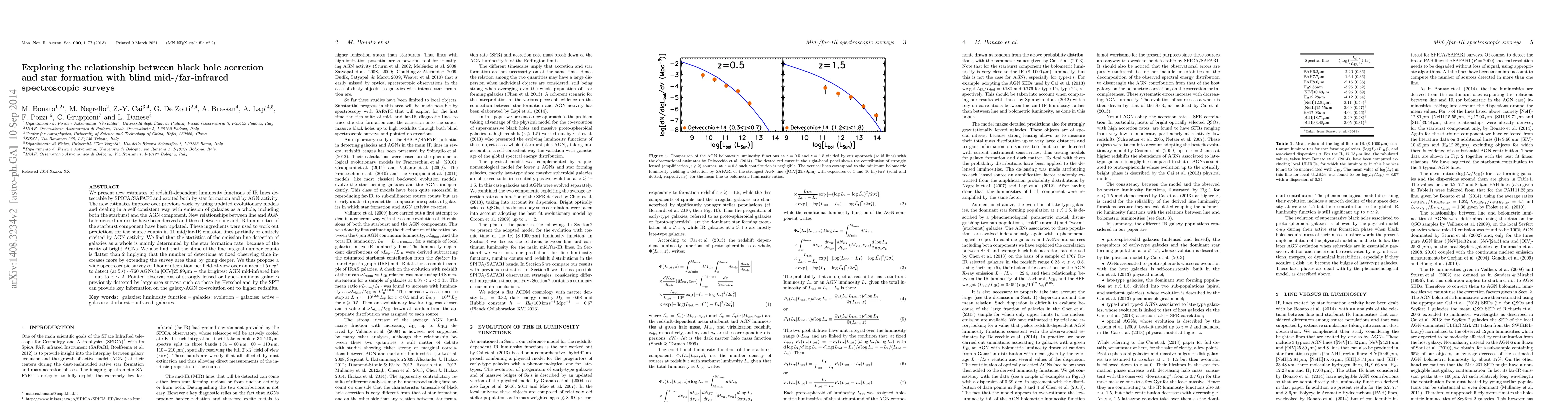 We present new estimates of redshift-dependent luminosity functions of IR lines detectable by SPICA/SAFARI and excited both by star formation and by AGN activity. The new estimates improve over previous work by using updated evolutionary models and dealing in a self consistent way with emission of galaxies as a whole, including both the starburst and the AGN component. New relationships between line and AGN bolometric luminosity have been derived and those between line and IR luminosities of the starburst component have been updated. These ingredients were used to work out predictions for the source counts in 11 mid/far-IR emission lines partially or entirely excited by AGN activity. We find that the statistics of the emission line detection of galaxies as a whole is mainly determined by the star formation rate, because of the rarity of bright AGNs. We also find that the slope of the line integral number counts is flatter than 2 implying that the number of detections at fixed observing time increases more by extending the survey area than by going deeper. We thus propose a wide spectroscopic survey of 1 hour integration per field-of-view over an area of 5 deg$^{2}$ to detect (at 5$\sigma$) $\sim$760 AGNs in [OIV]25.89$\mu$m $-$ the brightest AGN mid-infrared line $-$ out to $z\sim2$. Pointed observations of strongly lensed or hyper-luminous galaxies previously detected by large area surveys such as those by Herschel and by the SPT can provide key information on the galaxy-AGN co-evolution out to higher redshifts.