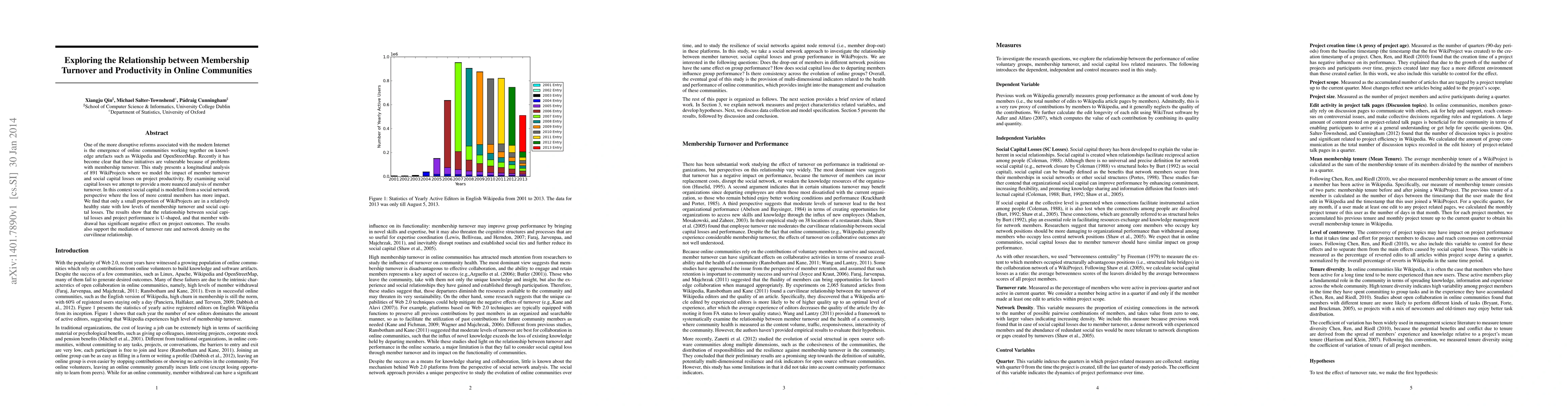 One of the more disruptive reforms associated with the modern Internet is the emergence of online communities working together on knowledge artefacts such as Wikipedia and OpenStreetMap. Recently it has become clear that these initiatives are vulnerable because of problems with membership turnover. This study presents a longitudinal analysis of 891 WikiProjects where we model the impact of member turnover and social capital losses on project productivity. By examining social capital losses we attempt to provide a more nuanced analysis of member turnover. In this context social capital is modelled from a social network perspective where the loss of more central members has more impact. We find that only a small proportion of WikiProjects are in a relatively healthy state with low levels of membership turnover and social capital losses. The results show that the relationship between social capital losses and project performance is U-shaped, and that member withdrawal has significant negative effect on project outcomes. The results also support the mediation of turnover rate and network density on the curvilinear relationship.