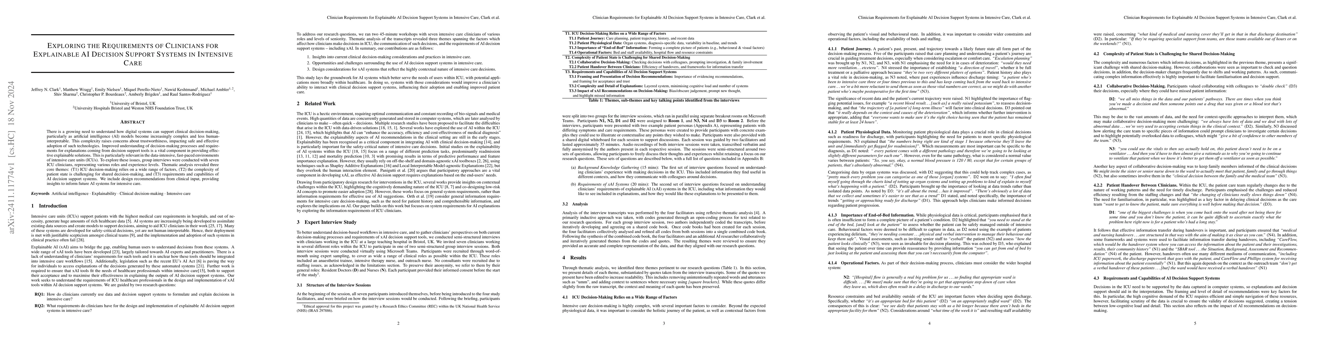 This study investigates clinicians' requirements for explainable AI decision support in intensive care units (ICUs). Through interviews with ICU clinicians, three themes emerged: the multifaceted nature of ICU decision-making, challenges posed by patient state complexity, and specific needs for AI decision support systems. The findings offer design recommendations to enhance future AI tools for ICU settings.