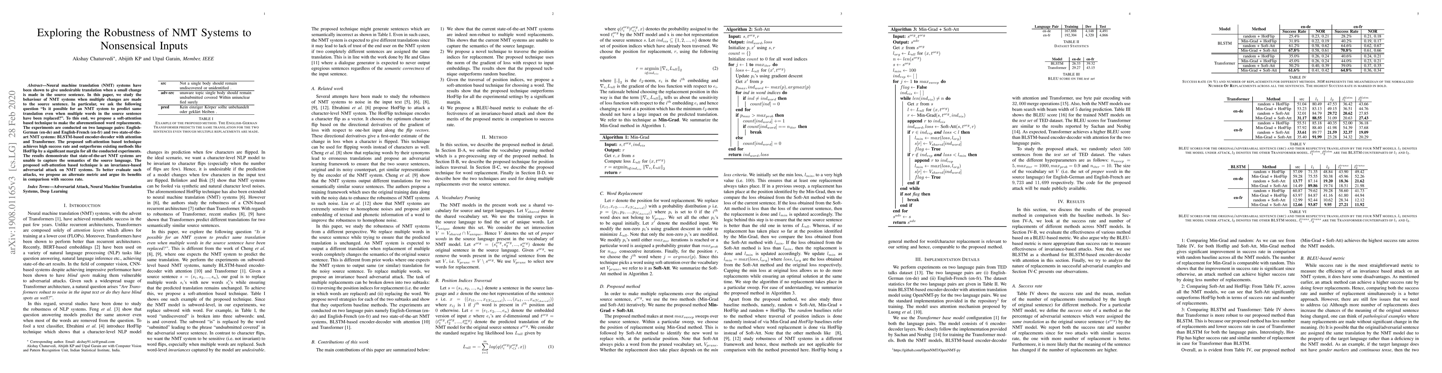 Neural machine translation (NMT) systems have been shown to give undesirable translation when a small change is made in the source sentence. In this paper, we study the behaviour of NMT systems when multiple changes are made to the source sentence. In particular, we ask the following question "Is it possible for an NMT system to predict same translation even when multiple words in the source sentence have been replaced?". To this end, we propose a soft-attention based technique to make the aforementioned word replacements. The experiments are conducted on two language pairs: English-German (en-de) and English-French (en-fr) and two state-of-the-art NMT systems: BLSTM-based encoder-decoder with attention and Transformer. The proposed soft-attention based technique achieves high success rate and outperforms existing methods like HotFlip by a significant margin for all the conducted experiments. The results demonstrate that state-of-the-art NMT systems are unable to capture the semantics of the source language. The proposed soft-attention based technique is an invariance-based adversarial attack on NMT systems. To better evaluate such attacks, we propose an alternate metric and argue its benefits in comparison with success rate.