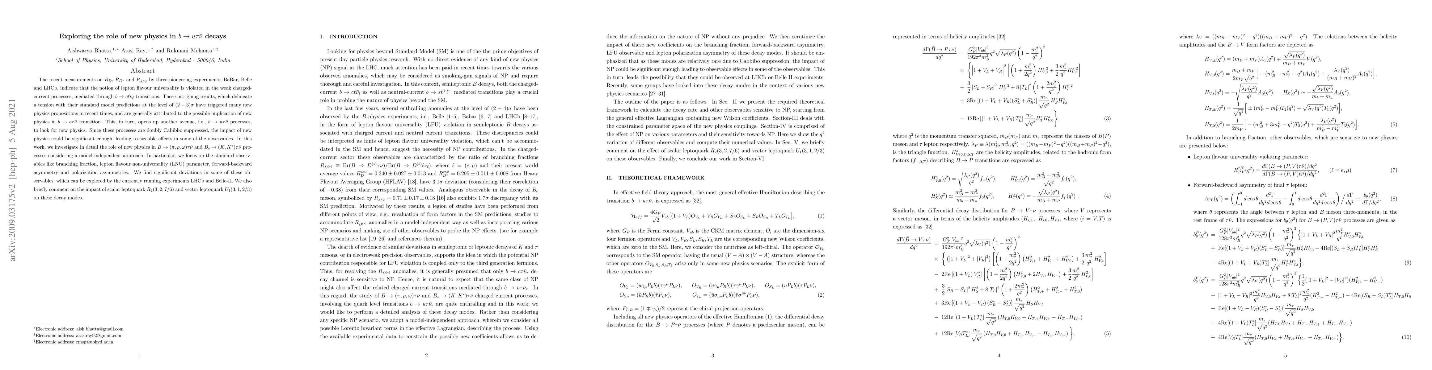 This paper investigates the potential role of new physics in $b \to u \tau \bar \nu$ decays, motivated by deviations in $b \to c \tau \bar \nu$ processes that challenge the standard model. The study employs a model-independent approach to analyze standard observables and finds significant deviations that could be detected by LHCb and Belle-II, with a brief discussion on the impact of specific leptoquarks.