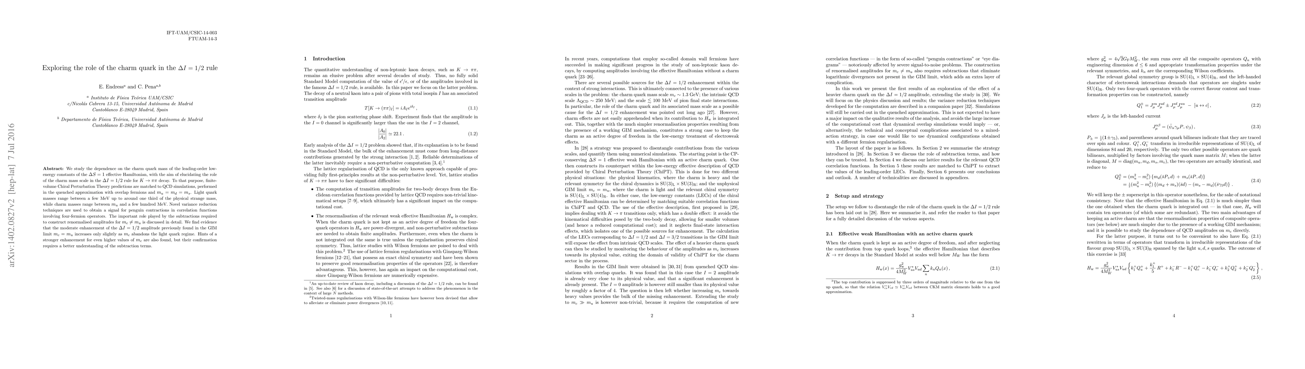 This research investigates the charm quark's influence on the $\Delta I=1/2$ rule in $K\to\pi\pi$ decay by analyzing its mass dependence on leading-order low-energy constants in the $\Delta S=1$ effective Hamiltonian. Results suggest a slight enhancement of the $\Delta I=1/2$ amplitude as charm quark mass increases from light quark values, with indications of a potential stronger enhancement at higher masses pending better subtraction term understanding.