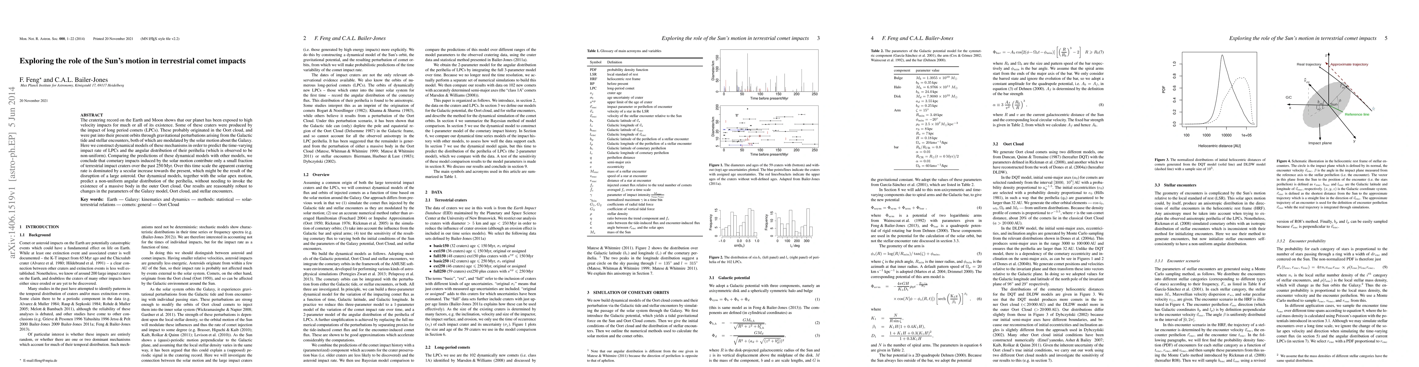 The cratering record on the Earth and Moon shows that our planet has been exposed to high velocity impacts for much or all of its existence. Some of these craters were produced by the impact of long period comets (LPCs). These probably originated in the Oort cloud, and were put into their present orbits through gravitational perturbations arising from the Galactic tide and stellar encounters, both of which are modulated by the solar motion about the Galaxy. Here we construct dynamicalmodels of these mechanisms in order to predict the time-varying impact rate of LPCs and the angular distribution of their perihelia (which is observed to be non-uniform). Comparing the predictions of these dynamical models with other models, we conclude that cometary impacts induced by the solar motion contribute only a small fraction of terrestrial impact craters over the past 250 Myr. Over this time scale the apparent cratering rate is dominated by a secular increase towards the present, which might be the result of the disruption of a large asteroid. Our dynamical models, together with the solar apex motion, predict a non-uniform angular distribution of the perihelia, without needing to invoke the existence of a massive body in the outer Oort cloud. Our results are reasonably robust to changes in the parameters of the Galaxy model, Oort cloud, and stellar encounters.