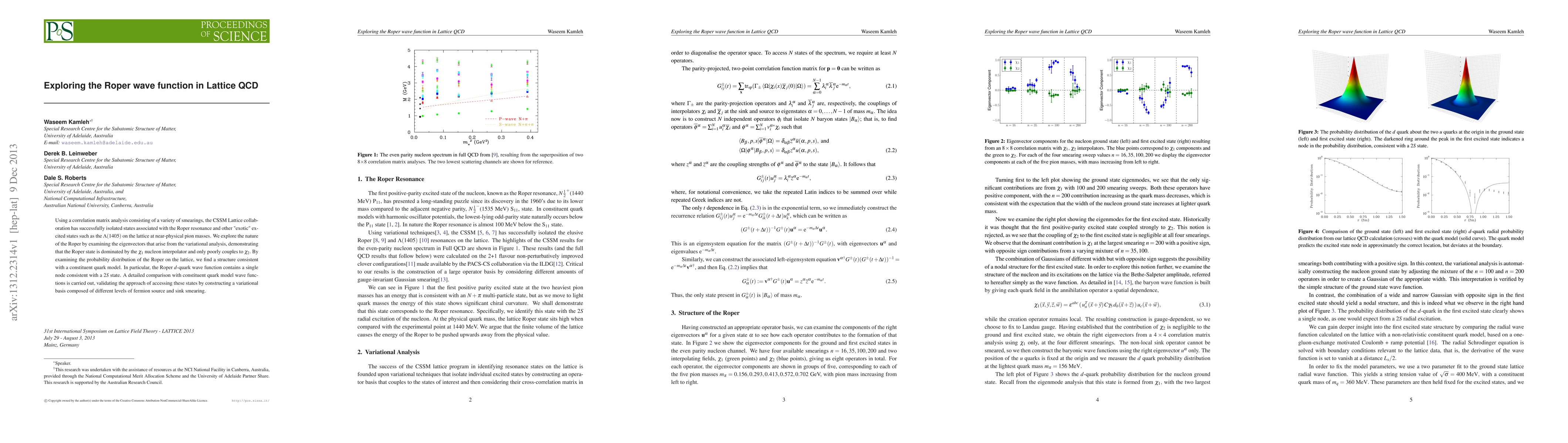 The CSSM Lattice collaboration identifies Roper and exotic excited states using variational analysis in Lattice QCD, finding the Roper dominated by $\chi_1$ nucleon interpolators. The study reveals a $2S$ state structure consistent with a constituent quark model, validated through detailed comparison with such models.