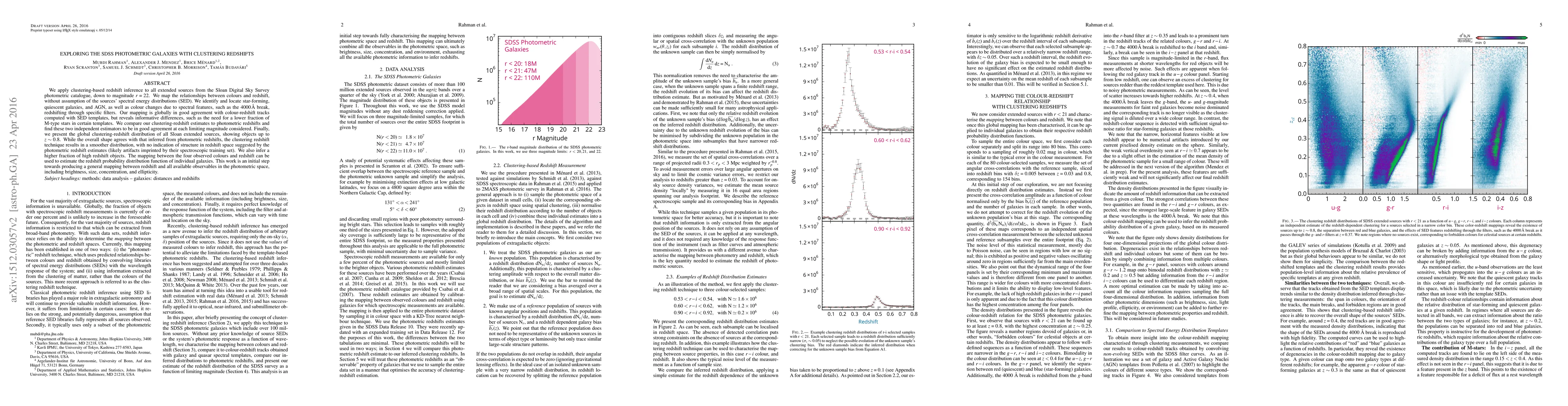 We apply clustering-based redshift inference to all extended sources from the Sloan Digital Sky Survey photometric catalogue, down to magnitude r = 22. We map the relationships between colours and redshift, without assumption of the sources' spectral energy distributions (SED). We identify and locate star-forming, quiescent galaxies, and AGN, as well as colour changes due to spectral features, such as the 4000 \AA{} break, redshifting through specific filters. Our mapping is globally in good agreement with colour-redshift tracks computed with SED templates, but reveals informative differences, such as the need for a lower fraction of M-type stars in certain templates. We compare our clustering-redshift estimates to photometric redshifts and find these two independent estimators to be in good agreement at each limiting magnitude considered. Finally, we present the global clustering-redshift distribution of all Sloan extended sources, showing objects up to z ~ 0.8. While the overall shape agrees with that inferred from photometric redshifts, the clustering redshift technique results in a smoother distribution, with no indication of structure in redshift space suggested by the photometric redshift estimates (likely artifacts imprinted by their spectroscopic training set). We also infer a higher fraction of high redshift objects. The mapping between the four observed colours and redshift can be used to estimate the redshift probability distribution function of individual galaxies. This work is an initial step towards producing a general mapping between redshift and all available observables in the photometric space, including brightness, size, concentration, and ellipticity.