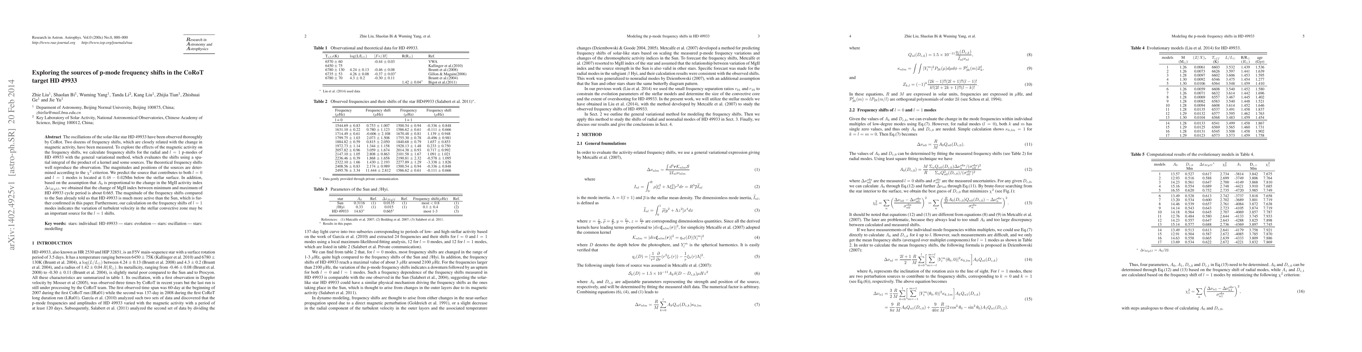 The oscillations of the solar-like star HD 49933 have been observed thoroughly by CoRot. Two dozens of frequency shifts, which are closely related with the change in magnetic activity, have been measured. To explore the effects of the magnetic activity on the frequency shifts, we calculate frequency shifts for the radial and $l = 1$ p-modes of HD 49933 with the general variational method, which evaluates the shifts using a spatial integral of the product of a kernel and some sources. The theoretical frequency shifts well reproduce the observation. The magnitudes and positions of the sources are determined according to the $\chi^2$ criterion. We predict the source that contributes to both $l = 0$ and $l = 1$ modes is located at $0.48 - 0.62$Mm below the stellar surface. In addition, based on the assumption that $A_{0}$ is proportional to the change in the MgII activity index $\Delta{i}_{MgII}$, we obtained that the change of MgII index between minimum and maximum of HD 49933 cycle period is about 0.665. The magnitude of the frequency shifts compared to the Sun already told us that HD 49933 is much more active than the Sun, which is further confirmed in this paper. Furthermore, our calculation on the frequency shifts of $l = 1$ modes indicates the variation of turbulent velocity in the stellar convective zone may be an important source for the $l = 1$ shifts.