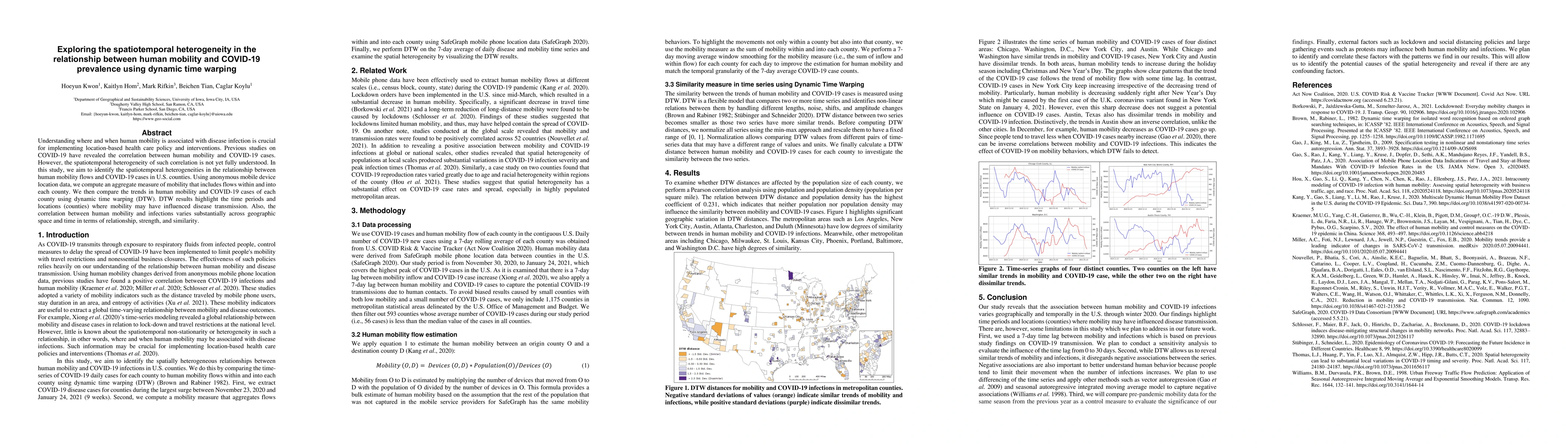 This study investigates the spatiotemporal heterogeneity in the link between human mobility and COVID-19 prevalence in U.S. counties using dynamic time warping (DTW). Findings reveal significant geographic and temporal variations in how mobility influences disease transmission, highlighting specific periods and locations where mobility patterns correlate with COVID-19 case trends.