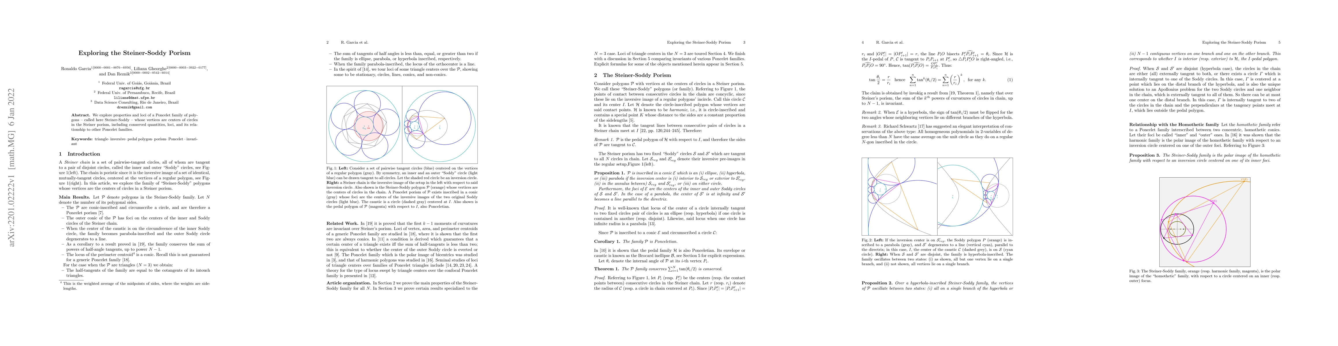 Summary: This paper investigates the properties and geometric loci of Steiner-Soddy polygons, which are derived from the Steiner porism and involve circles' centers, focusing on conserved quantities and their connections to other Poncelet families.
