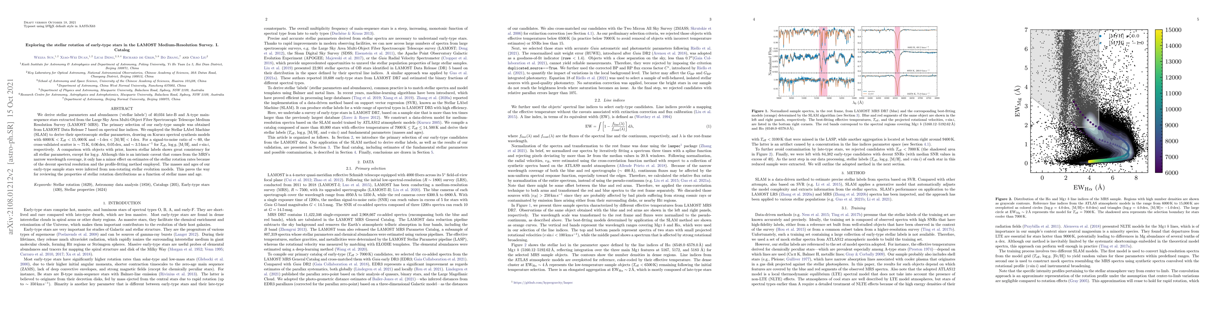 This paper catalogs the stellar rotation rates and parameters of 40,034 late-B and A-type stars from the LAMOST Medium Resolution Survey, using the Stellar LAbel Machine for analysis. The study provides a robust dataset for future investigations into the rotation of early-type stars across different masses and ages.