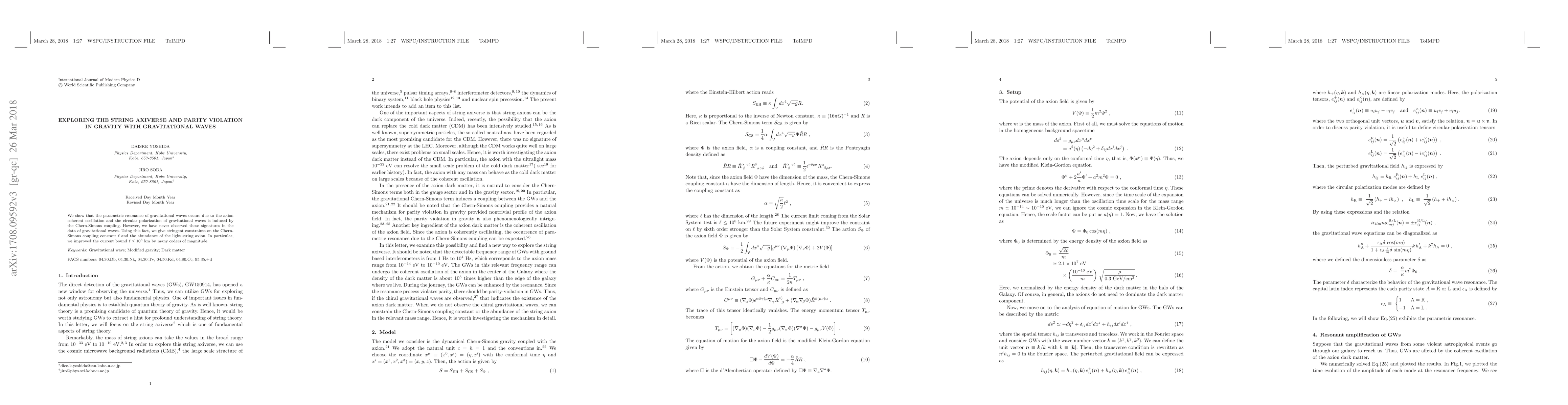 We show that the parametric resonance of gravitational waves occurs due to the axion coherent oscillation and the circular polarization of gravitational waves is induced by the Chern-Simons coupling. However, we have never observed these signatures in the data of gravitational waves. Using this fact, we give stringent constraints on the Chern-Simons coupling constant $\ell$ and the abundance of the light string axion. In particular, we improved the current bound $\ell\leq10^{8}\,\,{\rm km}$ by many orders of magnitude.