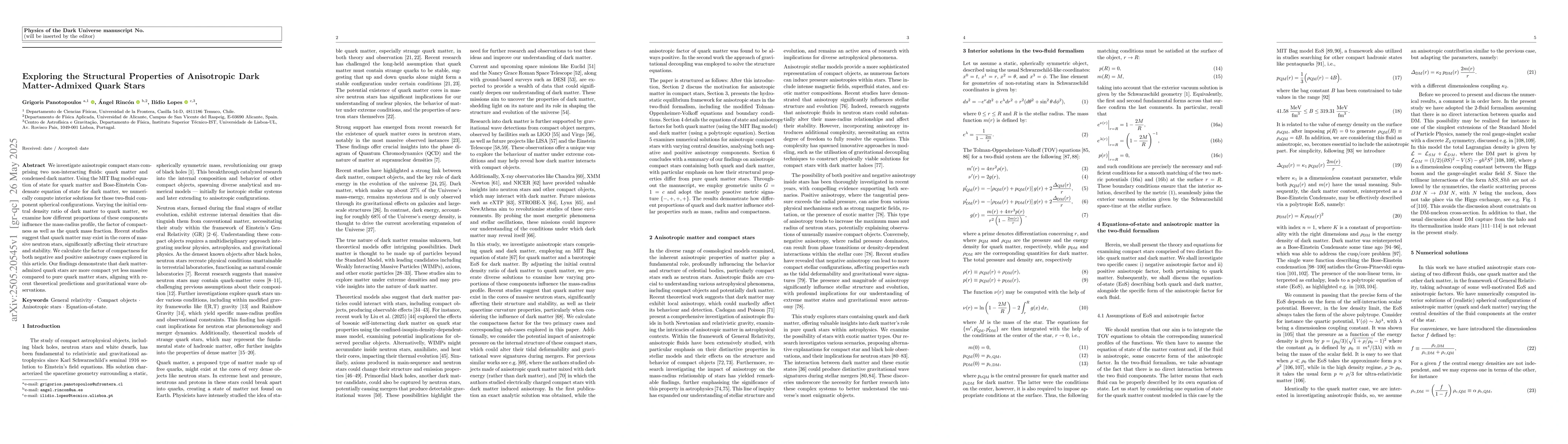 This work extends previous research by considering anisotropic configurations and their implications for dark matter-admixed quark stars, offering a more comprehensive understanding of such exotic stellar objects.