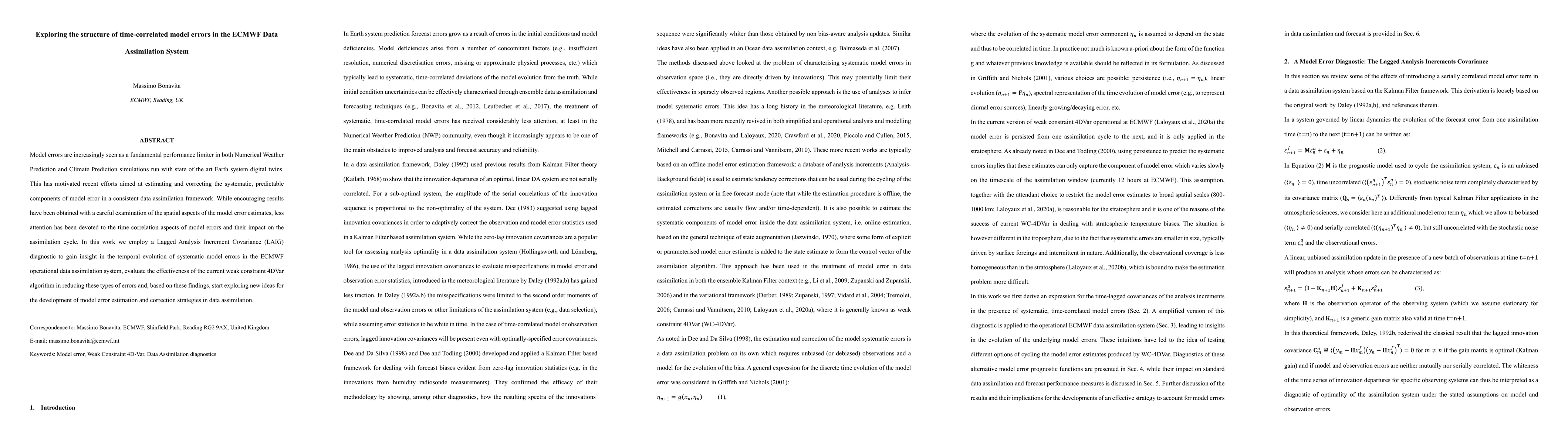 This paper investigates the time-correlated model errors within the ECMWF data assimilation system using a Lagged Analysis Increment Covariance diagnostic. It evaluates the effectiveness of the current weak constraint 4DVar algorithm in mitigating these errors and proposes new strategies for model error estimation and correction.