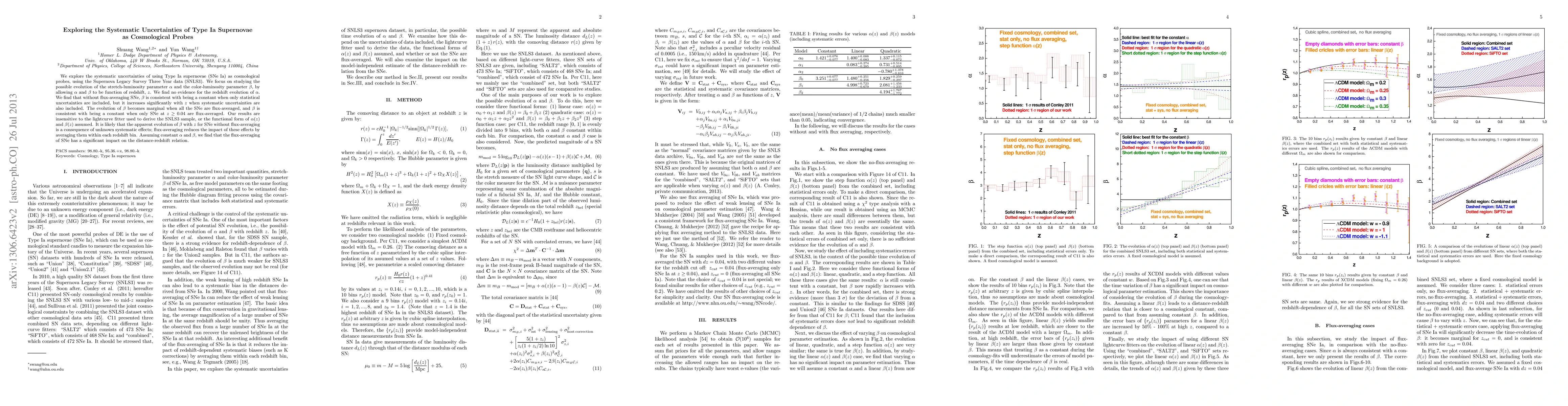 This paper investigates systematic uncertainties in using Type Ia supernovae (SNe Ia) as cosmological probes, finding no redshift evolution in the stretch-luminosity parameter $\alpha$. It reveals that the color-luminosity parameter $\beta$ appears to evolve with redshift due to systematic uncertainties, but this effect is mitigated by flux-averaging, suggesting unknown systematic effects influence the measurements.
