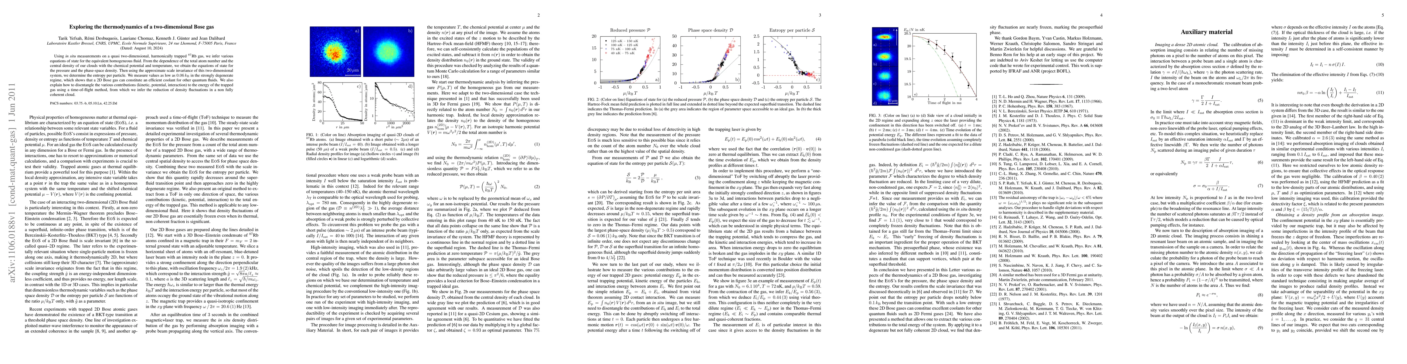 This study investigates the thermodynamics of a quasi two-dimensional Bose gas using \emph{in situ} measurements, deriving equations of state for pressure and phase-space density. The research finds low entropy values, indicating the potential of a 2D Bose gas as an efficient coolant, and employs a time-of-flight method to analyze energy contributions and density fluctuations.