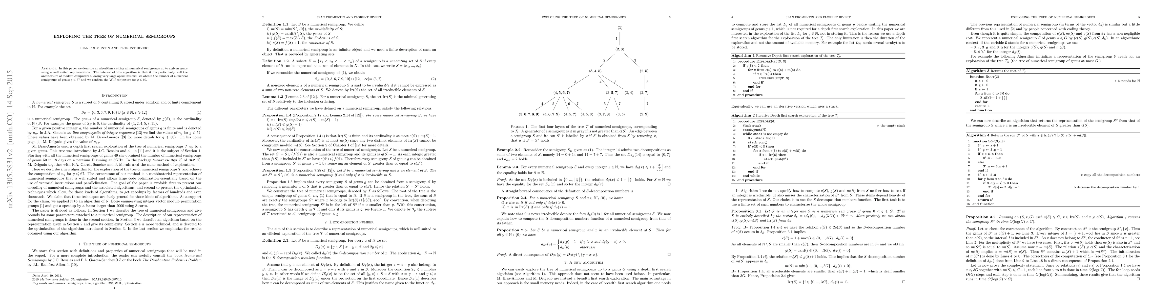 In this paper we describe an algorithm visiting all numerical semigroups up to a given genus using a well suited representation. The interest of this algorithm is that it fits particularly well the architecture of modern computers allowing very large optimizations: we obtain the number of numerical semigroups of genus g 67 and we confirm the Wilf conjecture for g 60.
