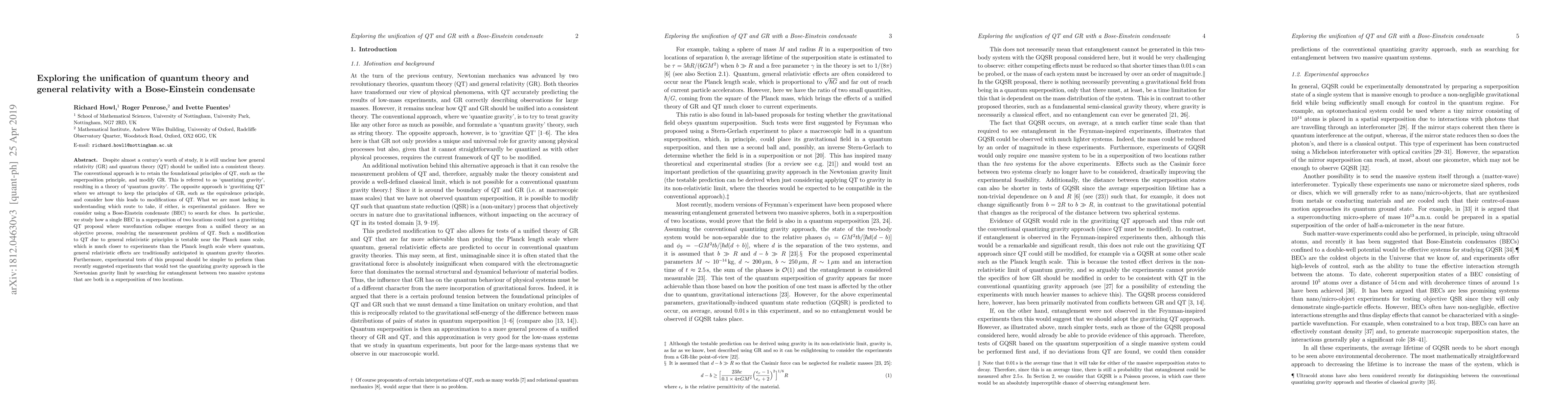 This research proposes using Bose-Einstein condensates (BECs) to explore unifying quantum theory and general relativity. It suggests testing a 'gravitizing QT' proposal where wavefunction collapse arises from a unified theory, testable near the Planck mass scale, potentially simpler than current quantum gravity experiments.