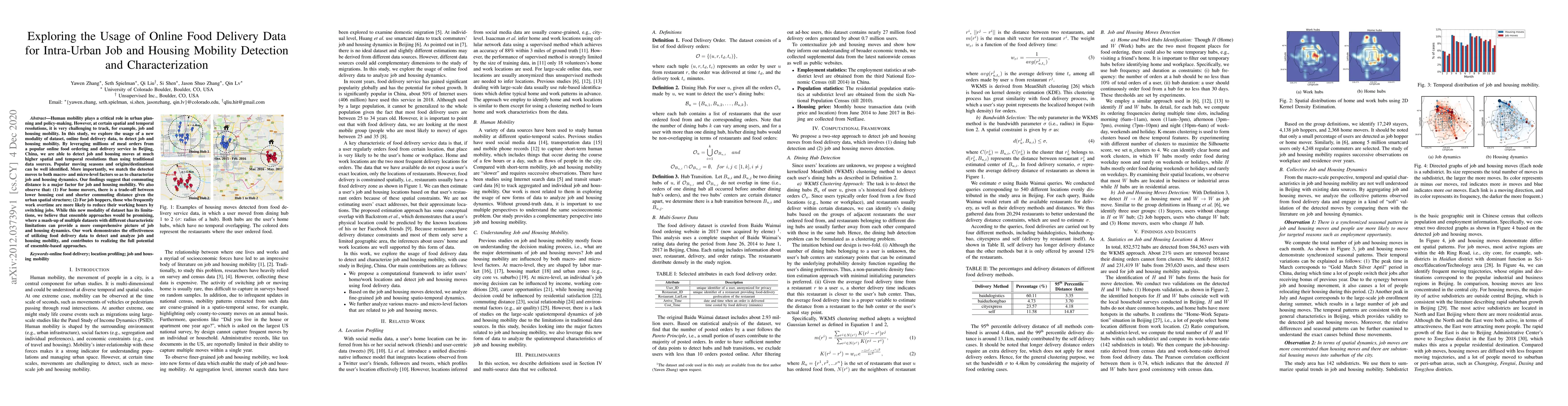 This paper explores the use of online food delivery data to detect and characterize intra-urban job and housing mobility in Beijing, China. The study reveals that commuting distance significantly influences mobility patterns and suggests that ensemble approaches combining multiple datasets could provide a more comprehensive understanding of urban dynamics.