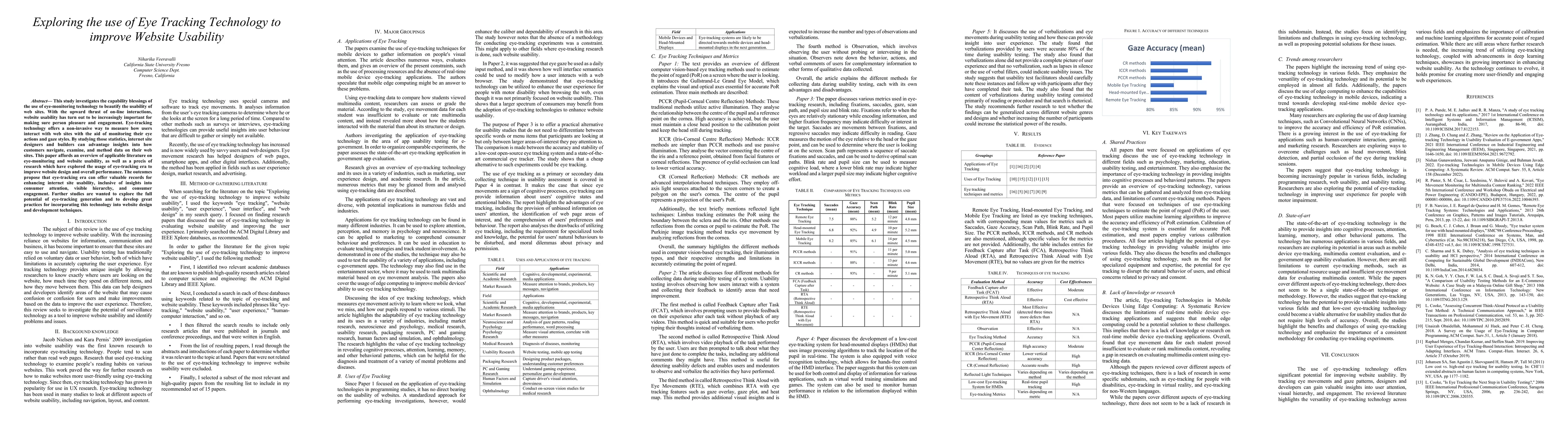 This study explores the use of eye-tracking technology to enhance website usability, revealing its potential to provide valuable insights into user attention and engagement. Further research is needed to fully realize its benefits and develop best practices for its integration into web design.