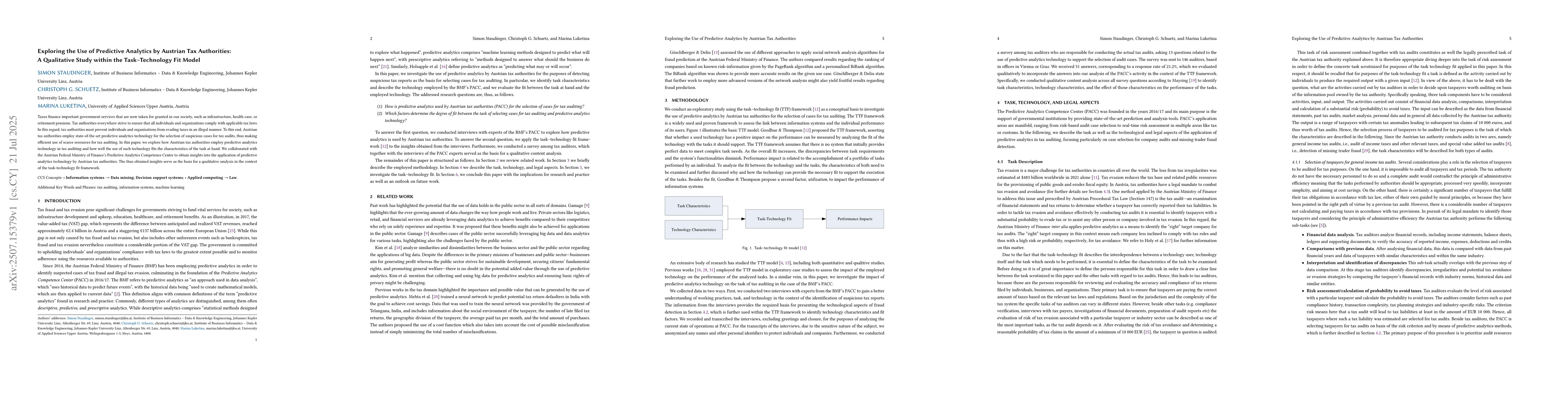 Taxes finance important government services that are now taken for granted in our society, such as infrastructure, health care, or retirement pensions. Tax authorities everywhere strive to ensure that all individuals and organizations comply with applicable tax laws. In this regard, tax authorities must prevent individuals and organizations from evading taxes in an illegal manner. To this end, Austrian tax authorities employ state-of-the-art predictive analytics technology for the selection of suspicious cases for tax audits, thus making efficient use of scarce resources for tax auditing. In this paper, we explore how Austrian tax authorities employ predictive analytics technology in tax auditing and how well the use of such technology fits the characteristics of the task at hand. We collaborated with the Austrian Federal Ministry of Finance's Predictive Analytics Competence Center to obtain insights into the application of predictive analytics technology by Austrian tax authorities. The thus obtained insights serve as the basis for a qualitative analysis in the context of the task-technology fit framework.