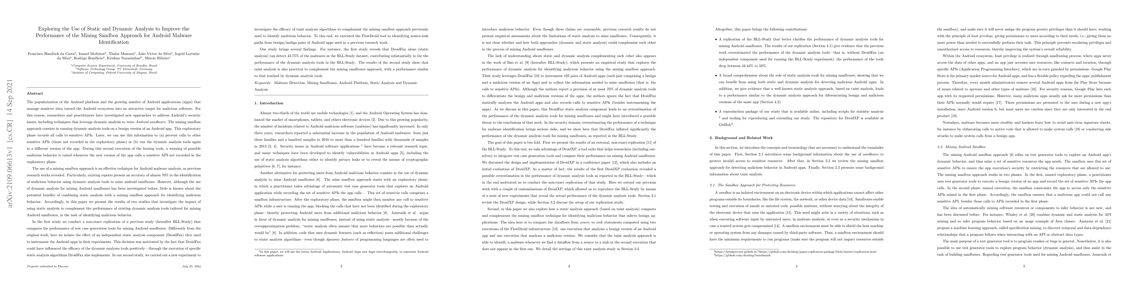 This paper explores combining static and dynamic analysis to enhance the mining sandbox approach for identifying Android malware. The study reveals that static analysis significantly improves dynamic analysis performance and that taint analysis can further boost the effectiveness of the mining sandbox by up to 28.57%.