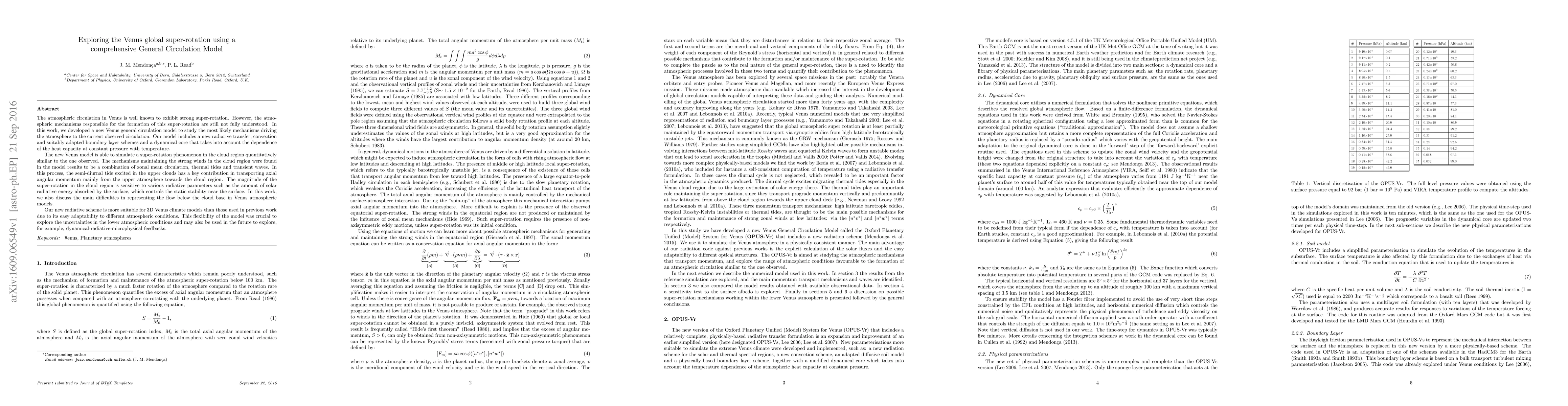 A new Venus general circulation model simulates a super-rotation phenomenon in the cloud region, attributing it to a combination of zonal mean circulation, thermal tides, and transient waves.