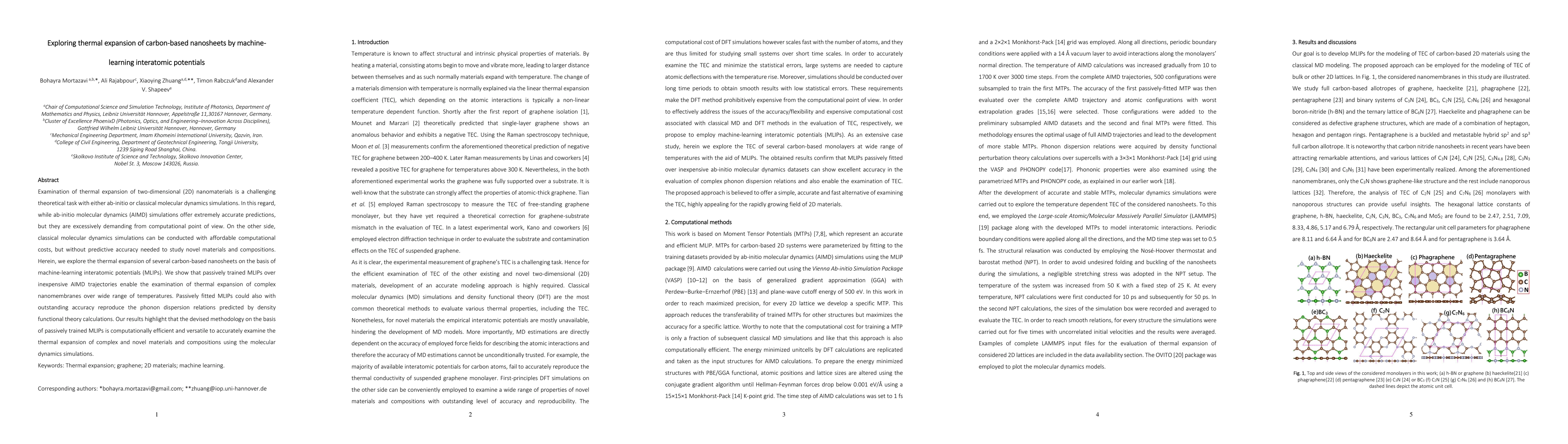 This paper explores the thermal expansion of carbon-based nanosheets using machine-learning interatomic potentials (MLIPs) derived from passive training on ab-initio molecular dynamics (AIMD) simulations. The study demonstrates that MLIPs provide a balance between computational efficiency and accuracy, enabling the examination of thermal expansion across a wide temperature range.