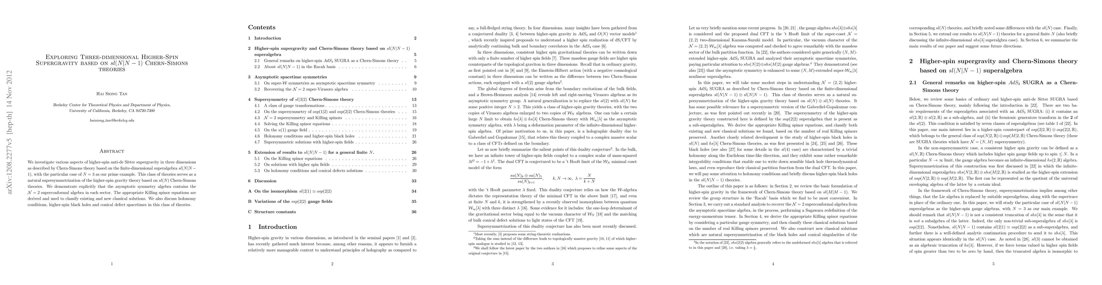 We investigate various aspects of higher-spin anti-de Sitter supergravity in three dimensions as described by Chern-Simons theory based on the finite-dimensional superalgebra sl(N |N - 1), with the particular case of N = 3 as our prime example. This class of theories serves as a natural supersymmetrization of the higher-spin gravity theory based on sl(N) Chern-Simons theories. We demonstrate explicitly that the asymptotic symmetry algebra contains the N = 2 superconformal algebra in each sector. The appropriate Killing spinor equations are derived and used to classify existing and new classical solutions. We also discuss holonomy conditions, higher-spin black holes and conical defect spacetimes in this class of theories.