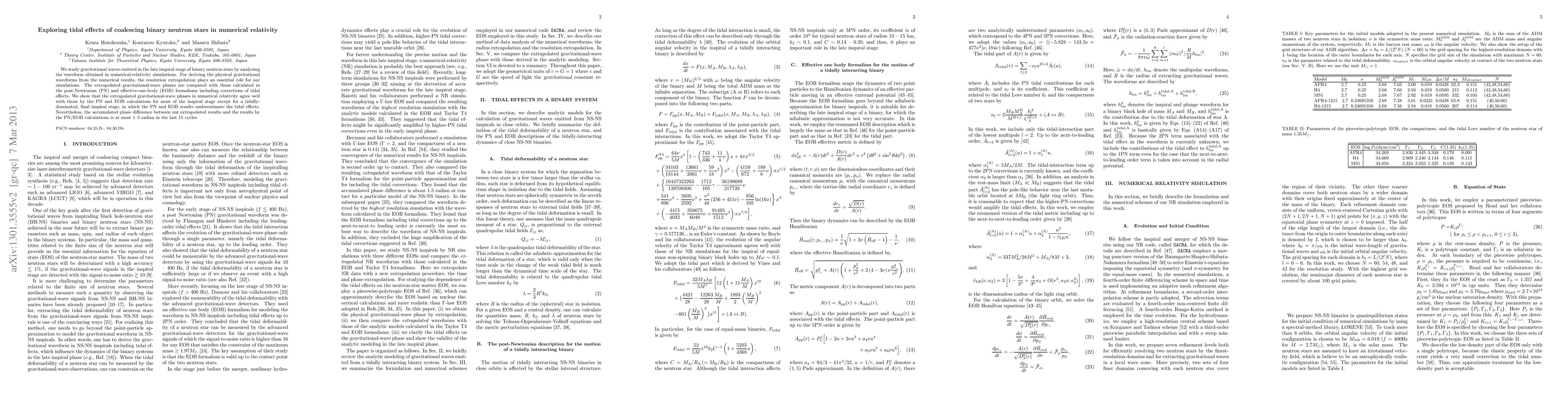 This research investigates gravitational waves from coalescing binary neutron stars using numerical relativity simulations, focusing on tidal effects. The study finds that extrapolated numerical results align well with post-Newtonian and effective-one-body calculations throughout most of the inspiral phase, though discrepancies arise in the final tidally-dominated stage.