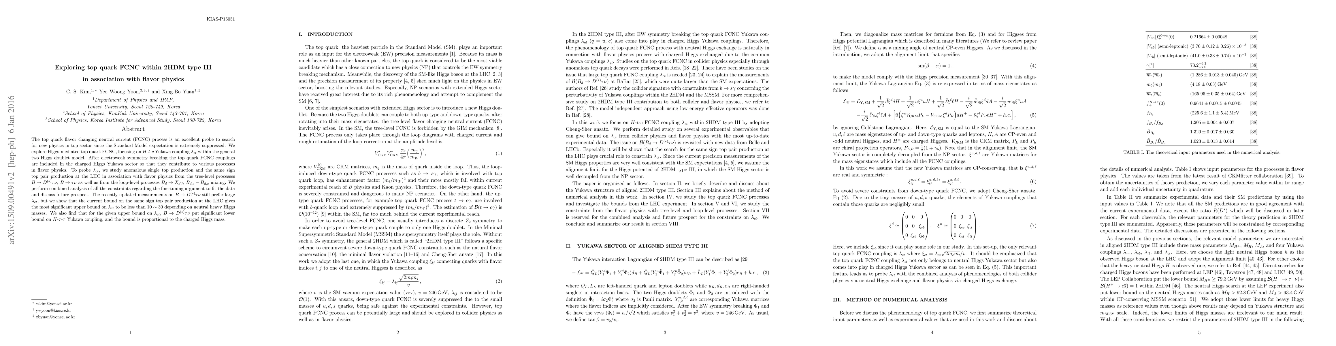 This paper investigates top quark flavor changing neutral current (FCNC) processes within the general two Higgs doublet model type III, focusing on the $H$-$t$-$c$ Yukawa coupling $\lambda_{ct}$. It explores implications for flavor physics and finds that current LHC data provides the most stringent upper bound on $\lambda_{ct}$, constraining it to less than $10\sim30$ depending on neutral heavy Higgs masses.