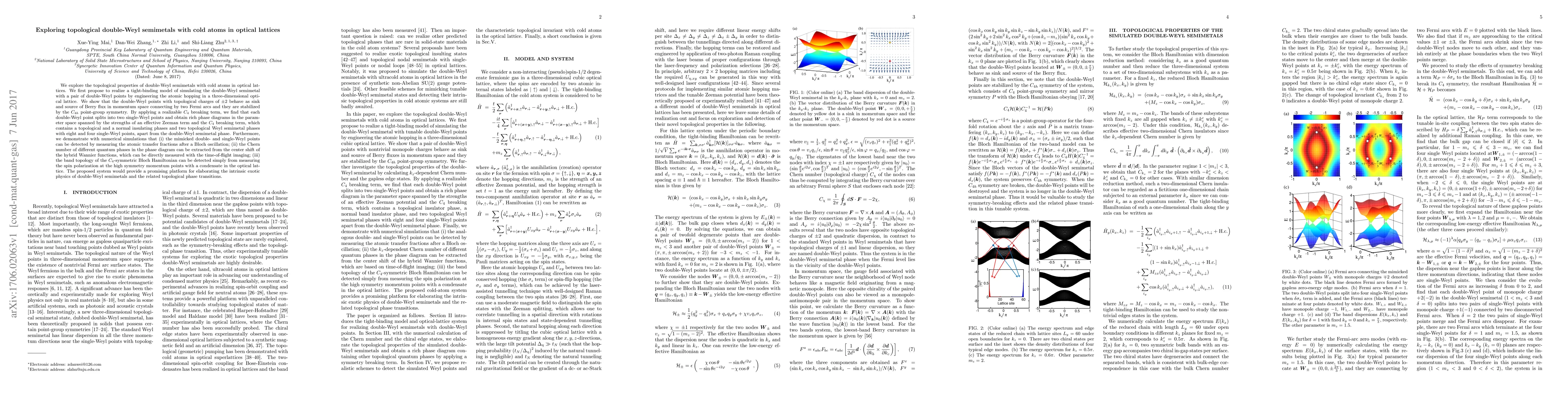 This paper proposes using cold atoms in optical lattices to simulate topological double-Weyl semimetals, demonstrating the stability of double-Weyl points with topological charges of ±2 and their phase transitions under C4 symmetry breaking. It also outlines experimental methods to detect these phenomena using atomic transfer fractions, Wannier functions, and spin polarization measurements.