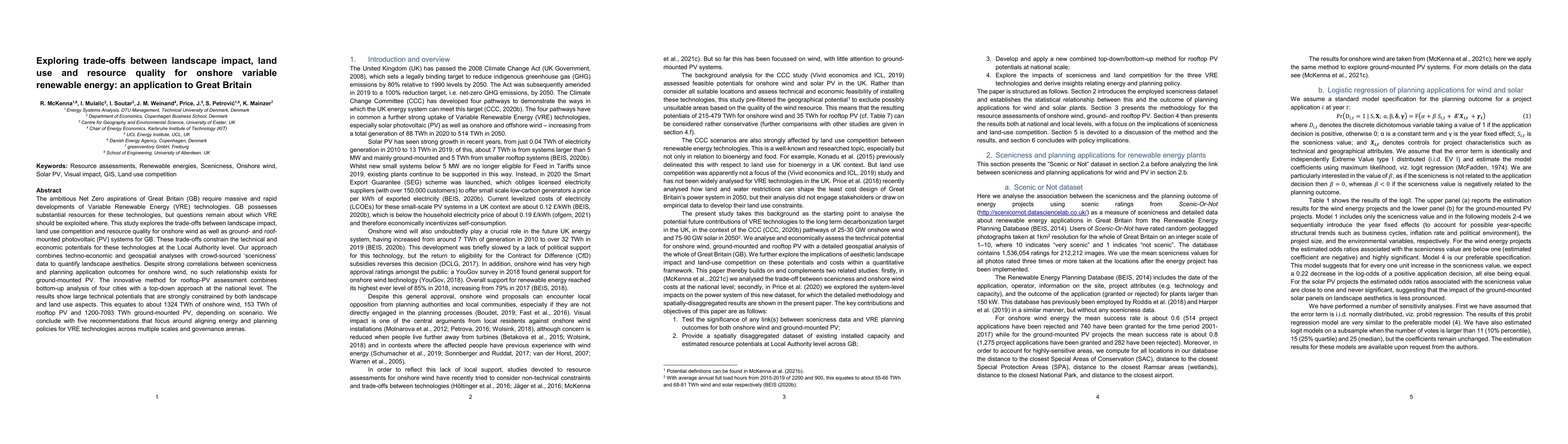 The ambitious Net Zero aspirations of Great Britain (GB) require massive and rapid developments of Variable Renewable Energy (VRE) technologies. GB possesses substantial resources for these technologies, but questions remain about which VRE should be exploited where. This study explores the trade-offs between landscape impact, land use competition and resource quality for onshore wind as well as ground- and roof-mounted photovoltaic (PV) systems for GB. These trade-offs constrain the technical and economic potentials for these technologies at the Local Authority level. Our approach combines techno-economic and geospatial analyses with crowd-sourced scenicness data to quantify landscape aesthetics. Despite strong correlations between scenicness and planning application outcomes for onshore wind, no such relationship exists for ground-mounted PV. The innovative method for rooftop-PV assessment combines bottom-up analysis of four cities with a top-down approach at the national level. The results show large technical potentials that are strongly constrained by both landscape and land use aspects. This equates to about 1324 TWh of onshore wind, 153 TWh of rooftop PV and 1200-7093 TWh ground-mounted PV, depending on scenario. We conclude with five recommendations that focus around aligning energy and planning policies for VRE technologies across multiple scales and governance arenas.