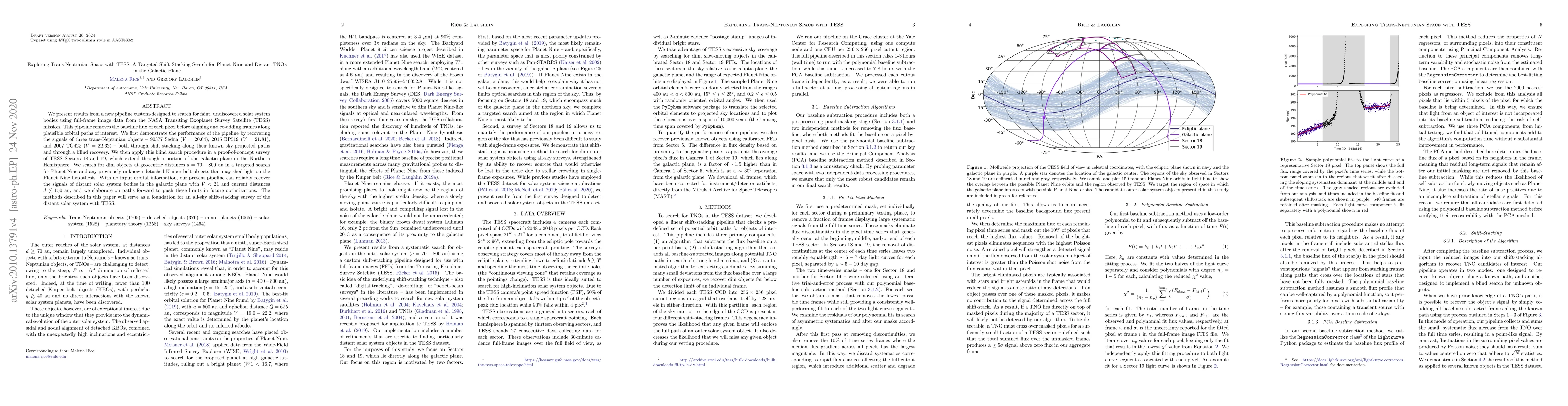 We present results from a new pipeline custom-designed to search for faint, undiscovered solar system bodies using full-frame image data from the NASA Transiting Exoplanet Survey Satellite (TESS) mission. This pipeline removes the baseline flux of each pixel before aligning and co-adding frames along plausible orbital paths of interest. We first demonstrate the performance of the pipeline by recovering the signals of three trans-Neptunian objects -- 90377 Sedna ($V=20.64$), 2015 BP519 ($V=21.81$), and 2007 TG422 ($V=22.32$) -- both through shift-stacking along their known sky-projected paths and through a blind recovery. We then apply this blind search procedure in a proof-of-concept survey of TESS Sectors 18 and 19, which extend through a portion of the galactic plane in the Northern Hemisphere. We search for dim objects at geocentric distances $d=70-800$ au in a targeted search for Planet Nine and any previously unknown detached Kuiper belt objects that may shed light on the Planet Nine hypothesis. With no input orbital information, our present pipeline can reliably recover the signals of distant solar system bodies in the galactic plane with $V<21$ and current distances $d\lesssim 150$ au, and we elaborate on paths forward to push these limits in future optimizations. The methods described in this paper will serve as a foundation for an all-sky shift-stacking survey of the distant solar system with TESS.