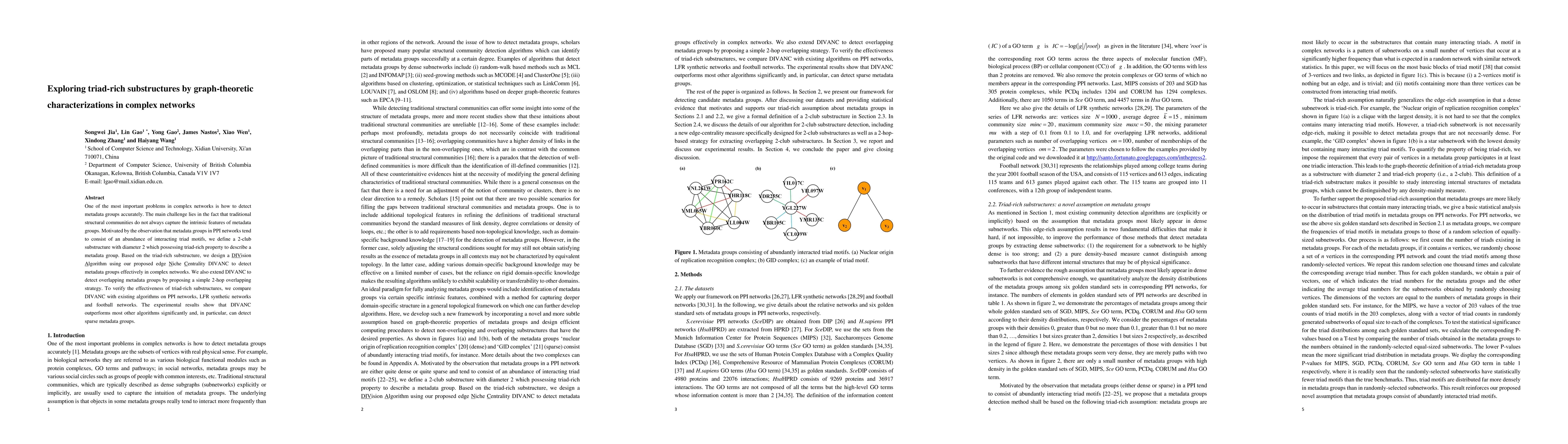 One of the most important problems in complex networks is how to detect metadata groups accurately. The main challenge lies in the fact that traditional structural communities do not always capture the intrinsic features of metadata groups. Motivated by the observation that metadata groups in PPI networks tend to consist of an abundance of interacting triad motifs, we define a 2-club substructure with diameter 2 which possessing triad-rich property to describe a metadata group. Based on the triad-rich substructure, we design a DIVision Algorithm using our proposed edge Niche Centrality DIVANC to detect metadata groups effectively in complex networks. We also extend DIVANC to detect overlapping metadata groups by proposing a simple 2-hop overlapping strategy. To verify the effectiveness of triad-rich substructures, we compare DIVANC with existing algorithms on PPI networks, LFR synthetic networks and football networks. The experimental results show that DIVANC outperforms most other algorithms significantly and, in particular, can detect sparse metadata groups.