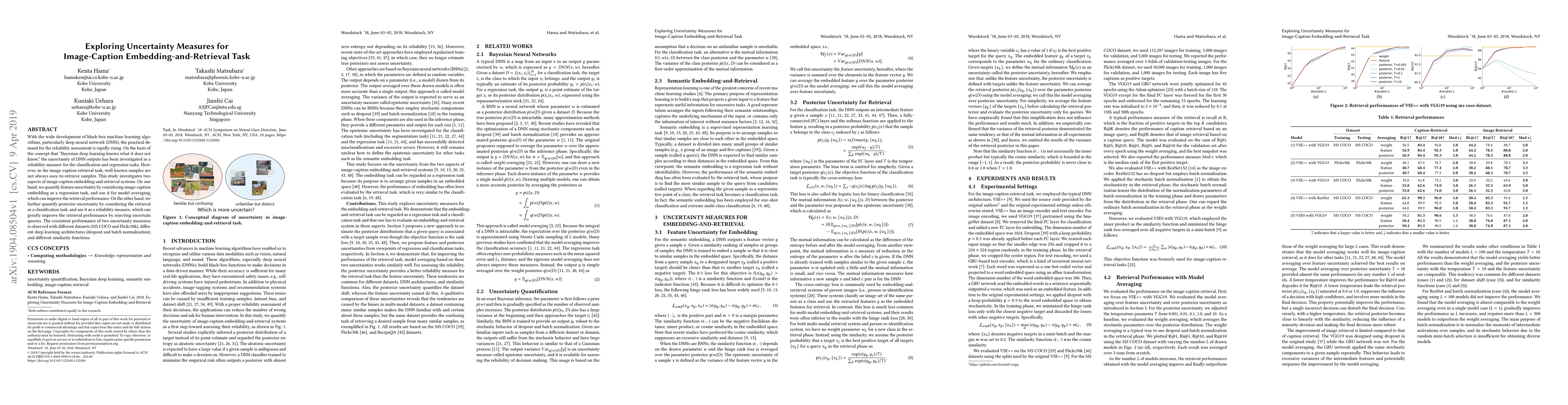 With the wide development of black-box machine learning algorithms, particularly deep neural network (DNN), the practical demand for the reliability assessment is rapidly rising. On the basis of the concept that `Bayesian deep learning knows what it does not know,' the uncertainty of DNN outputs has been investigated as a reliability measure for the classification and regression tasks. However, in the image-caption retrieval task, well-known samples are not always easy-to-retrieve samples. This study investigates two aspects of image-caption embedding-and-retrieval systems. On one hand, we quantify feature uncertainty by considering image-caption embedding as a regression task, and use it for model averaging, which can improve the retrieval performance. On the other hand, we further quantify posterior uncertainty by considering the retrieval as a classification task, and use it as a reliability measure, which can greatly improve the retrieval performance by rejecting uncertain queries. The consistent performance of two uncertainty measures is observed with different datasets (MS COCO and Flickr30k), different deep learning architectures (dropout and batch normalization), and different similarity functions.