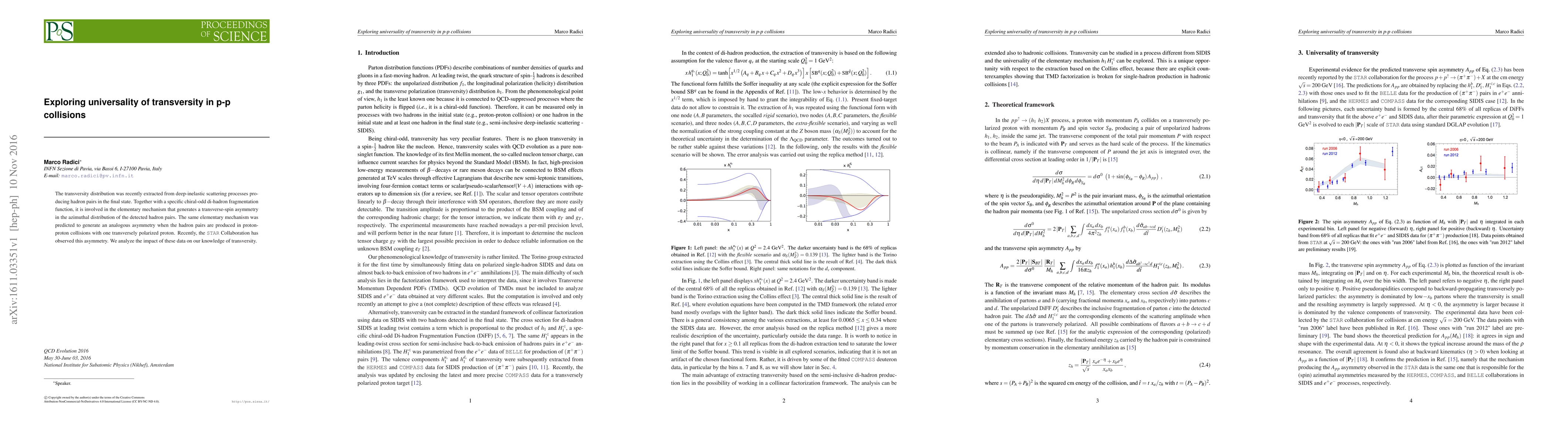 This paper investigates the universality of the transversity distribution in proton-proton collisions, confirming its role in generating transverse-spin asymmetries. The STAR Collaboration's recent observation of such asymmetries supports the theoretical prediction and enhances our understanding of transversity.