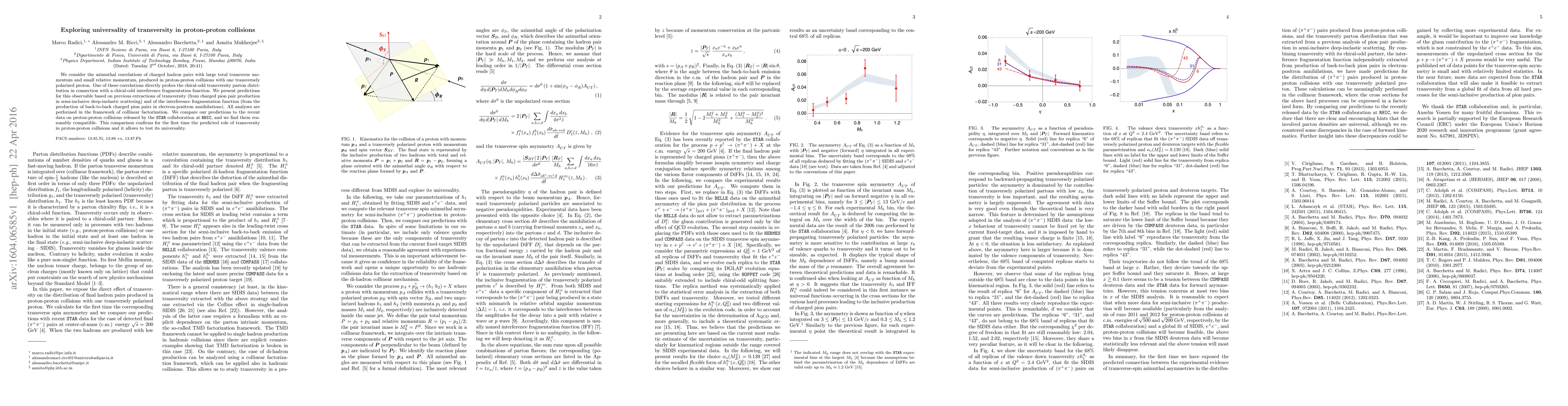 This paper explores the universality of the transversity parton distribution in proton-proton collisions by analyzing azimuthal correlations of charged hadron pairs. It finds compatibility between theoretical predictions based on previous extractions of transversity and recent STAR collaboration data, confirming the predicted role of transversity and its universality.