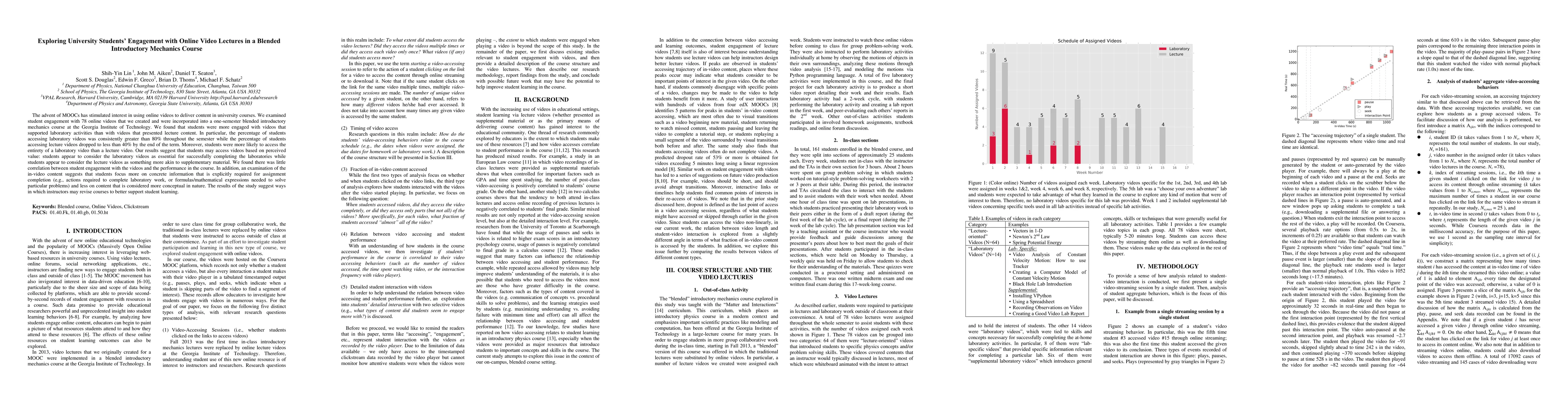 The study examined student engagement with 78 online videos in a blended introductory mechanics course at Georgia Tech, analyzing access patterns and content focus.