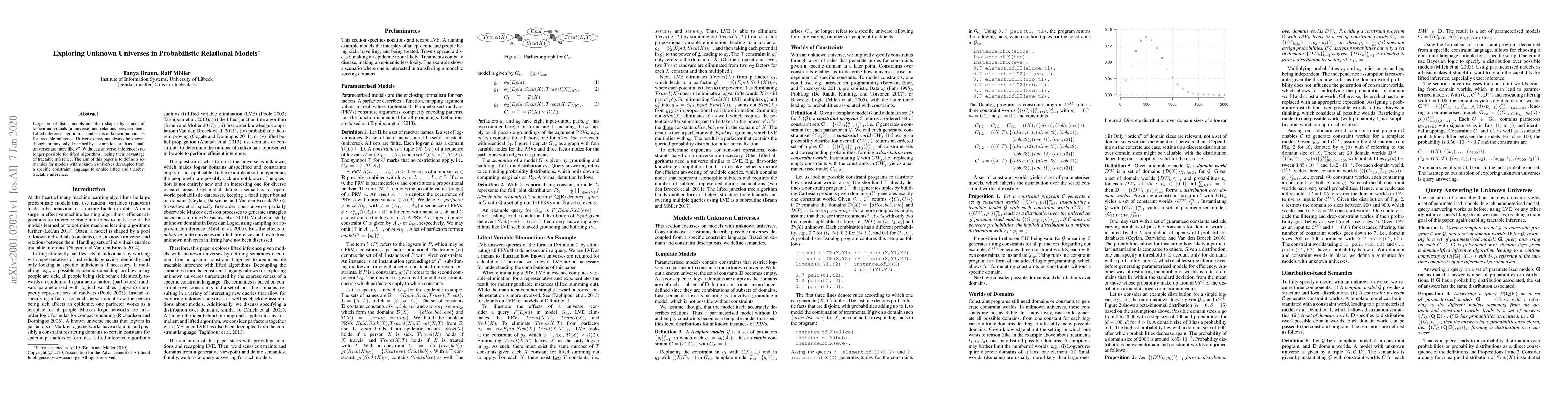 Large probabilistic models are often shaped by a pool of known individuals (a universe) and relations between them. Lifted inference algorithms handle sets of known individuals for tractable inference. Universes may not always be known, though, or may only described by assumptions such as "small universes are more likely". Without a universe, inference is no longer possible for lifted algorithms, losing their advantage of tractable inference. The aim of this paper is to define a semantics for models with unknown universes decoupled from a specific constraint language to enable lifted and thereby, tractable inference.