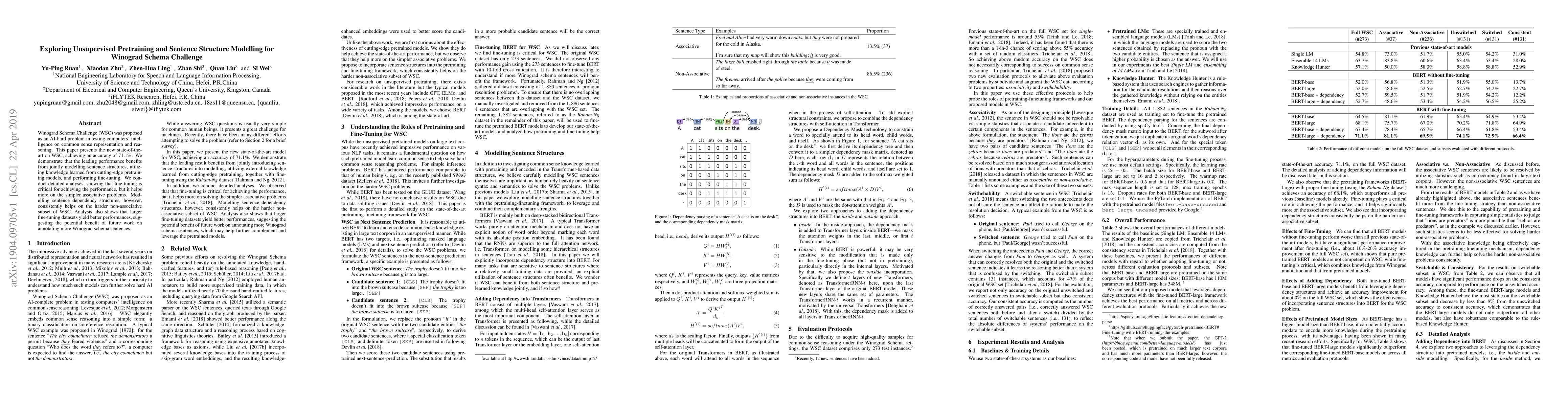 Winograd Schema Challenge (WSC) was proposed as an AI-hard problem in testing computers' intelligence on common sense representation and reasoning. This paper presents the new state-of-theart on WSC, achieving an accuracy of 71.1%. We demonstrate that the leading performance benefits from jointly modelling sentence structures, utilizing knowledge learned from cutting-edge pretraining models, and performing fine-tuning. We conduct detailed analyses, showing that fine-tuning is critical for achieving the performance, but it helps more on the simpler associative problems. Modelling sentence dependency structures, however, consistently helps on the harder non-associative subset of WSC. Analysis also shows that larger fine-tuning datasets yield better performances, suggesting the potential benefit of future work on annotating more Winograd schema sentences.