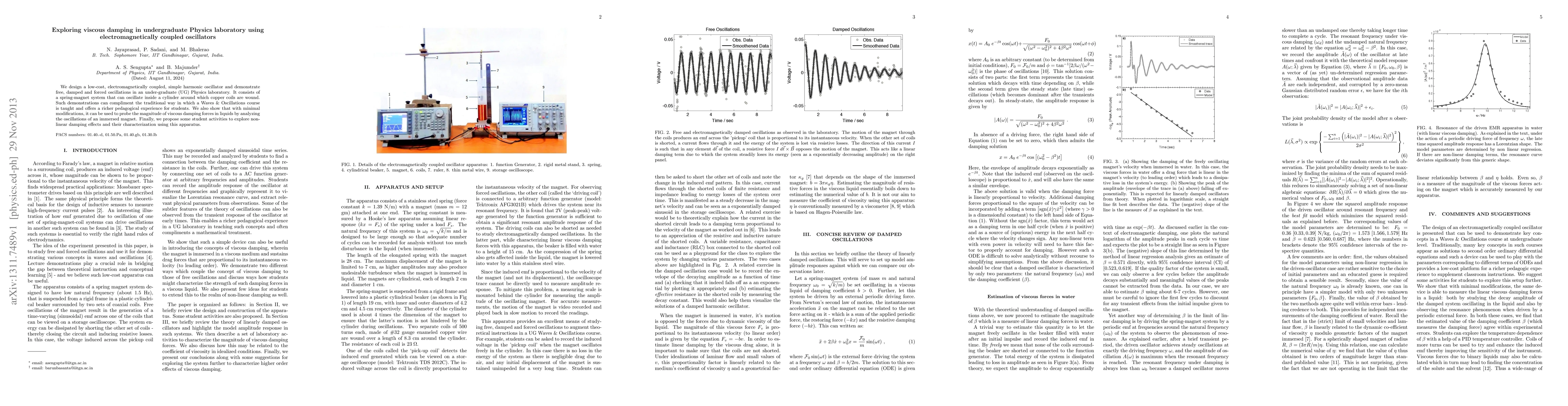 Researchers developed a low-cost, electromagnetically coupled oscillator to explore viscous damping in undergraduate physics labs, demonstrating free, damped, and forced oscillations and proposing student activities for non-linear damping effects.