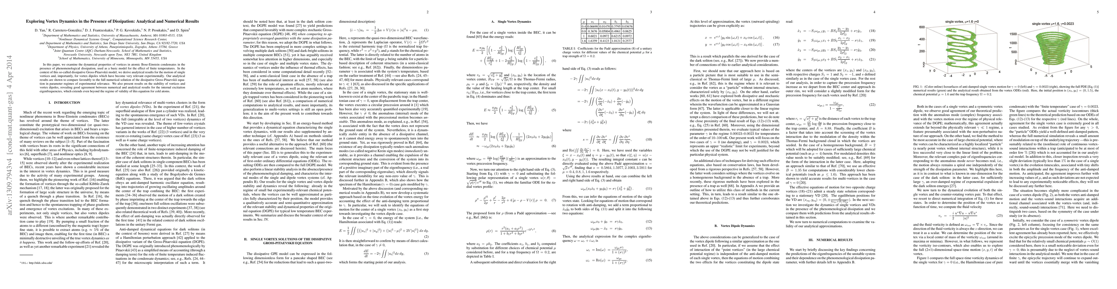 In this paper, we systematically examine the stability and dynamics of vortices under the effect of a phenomenological dissipation used as a simplified model for the inclusion of the effect of finite temperatures in atomic Bose-Einstein condensates. An advantage of this simplified model is that it enables an analytical prediction that can be compared directly (and favorably) to numerical results. We then extend considerations to a case of considerable recent experimental interest, namely that of a vortex dipole and observe good agreement between theory and numerical computations in both the stability properties (eigenvalues of the vortex dipole stationary states) and the dynamical evolution of such configurations.